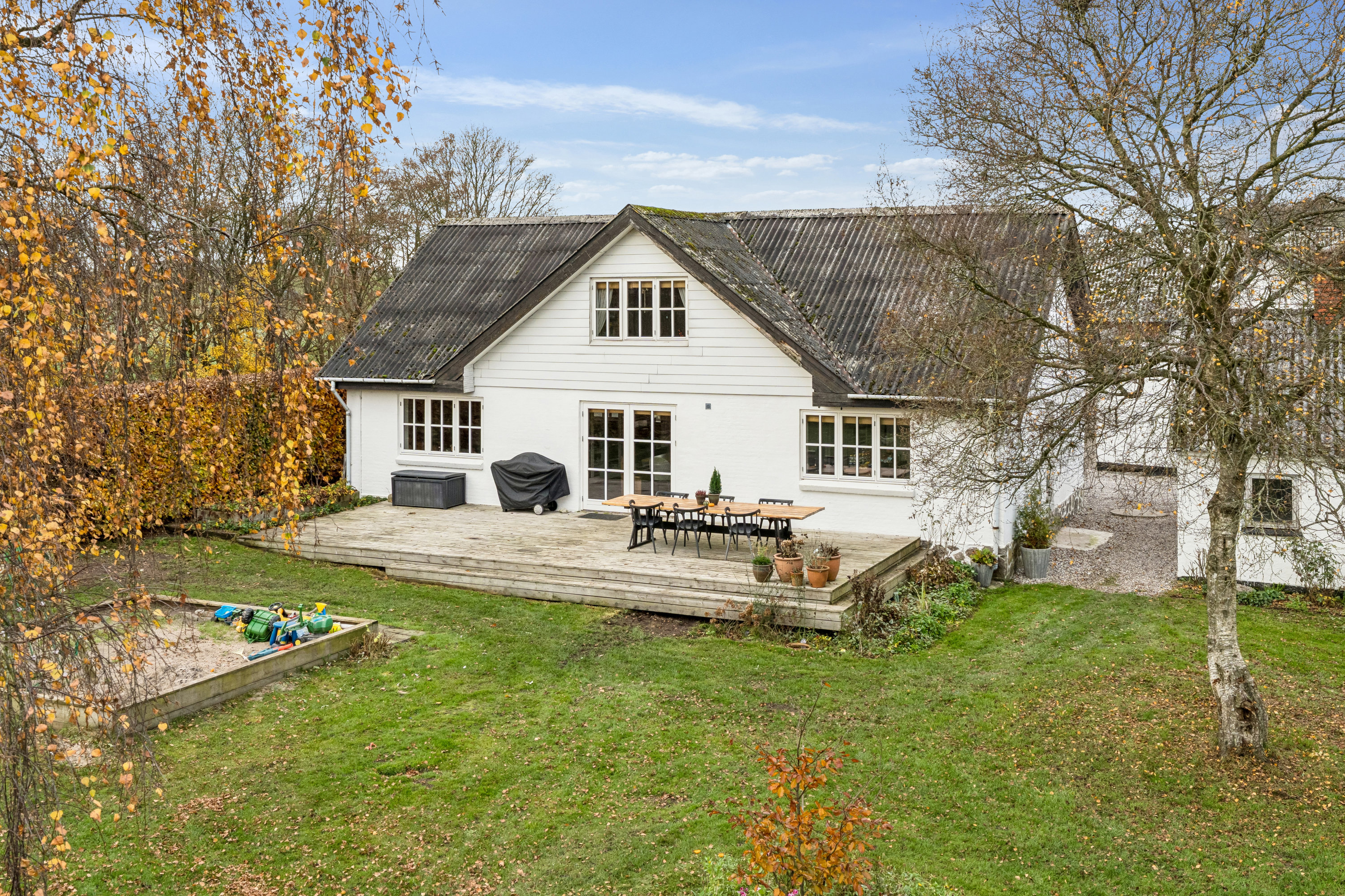 Ejendommen daterer helt tilbage til 1910, og det er da også historiens vingesus, der blæser gennem gårdspladsen, hvor kampesten i soklen, buede staldvinduer og sprosser sætter tonen. Her får I plads til alle aspekter af det gode udeliv, for mens I fra gårdspladsen har adgang til lade, stald, hestebokse og en god garage, der også kan bruges som værksted, er resten af den store grund dedikeret til såvel leg og afslapning i den private have som det gode hesteliv med mark og ridebane. Her kan I altså veksle mellem det aktive og det dasende, hele tiden med det smukke landskab som idyllisk kulisse.