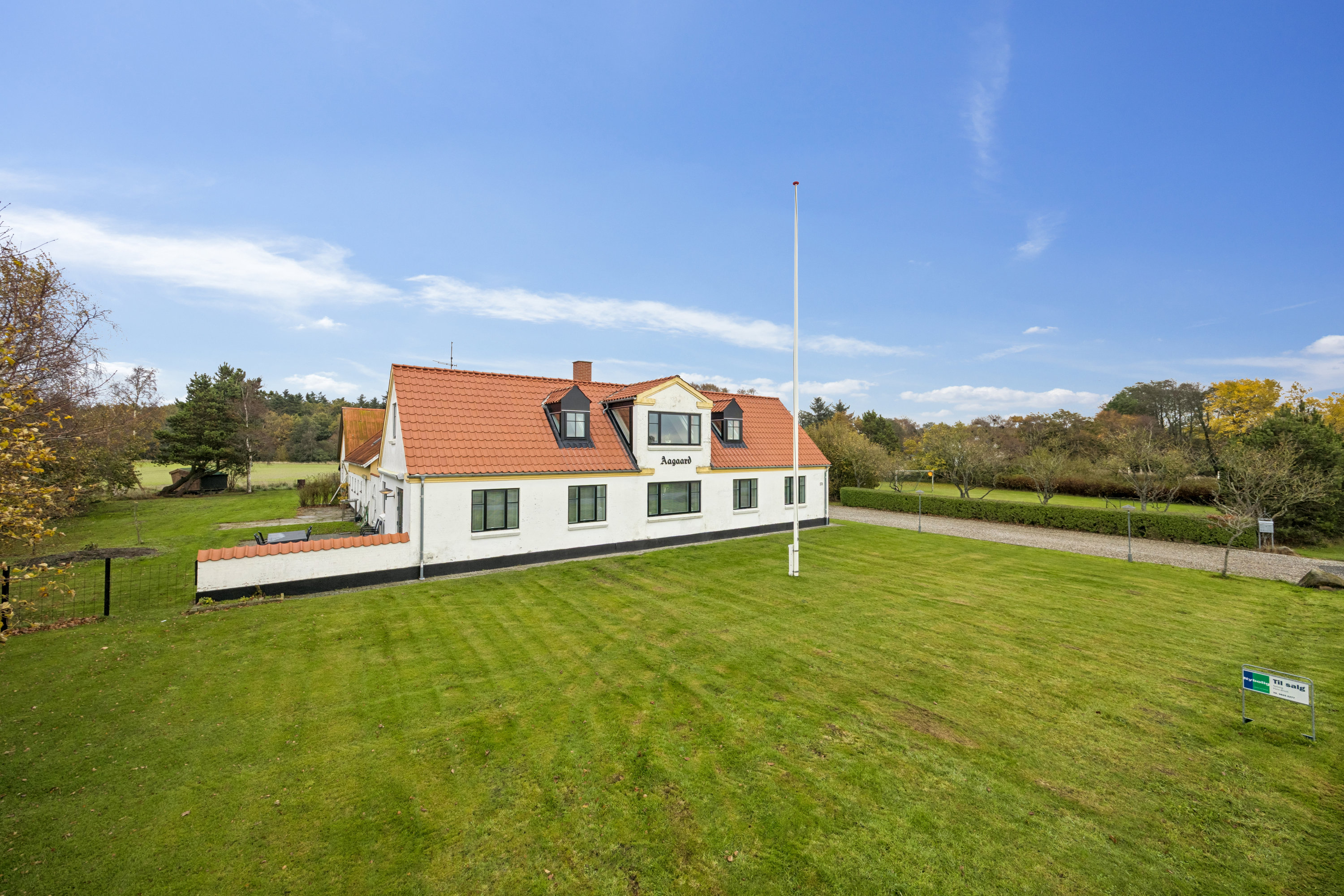 Ejendommen ligger omgivet af marker og ro. Mod syd strækker markerne sig direkte ned til Limfjorden, så kan I nyde naturens farvespil; de grønne og gullige toner, der glider over i grålige bølger og en vidtstrakt, blå himmel. Samtidig har I kun syv kilometer ind til Hals, der har alt til hverdagen. Her er skole, daginstitution og motionscenter; dagligvarer, spisesteder og butikker; og et charmerende havneliv, hvor I kan dyrke vandsport, svinge fiskestangen eller bare spise en is på en varm sommerdag.
