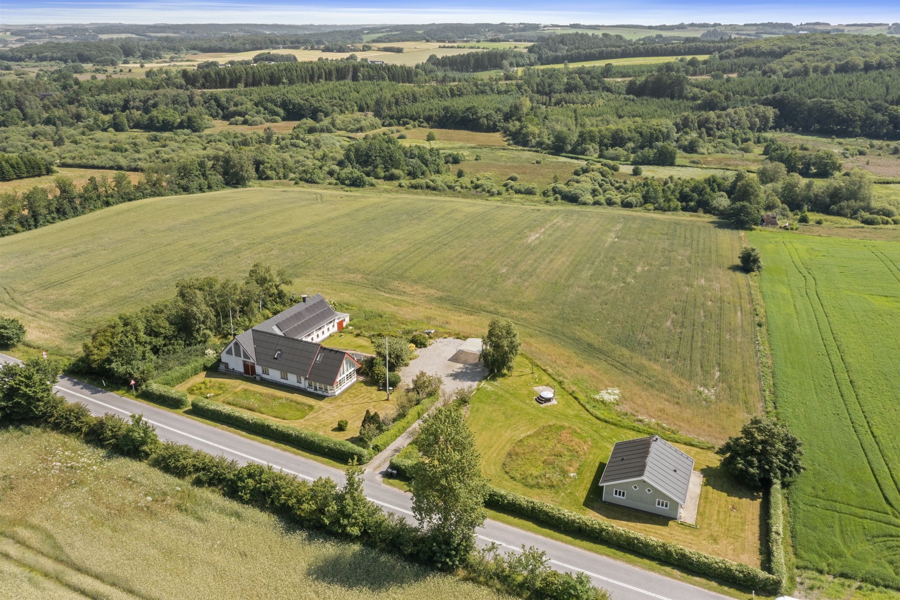 I et smukt kuperet landskab med en helt fantastisk udsigt finder du denne charmerende mindre landejendom med ca. 9 ha jord – beliggende i et af områdets mest eftertragtede og naturskønne omgivelser. Her får du fred, plads og frihed – uden at gå på kompromis med komforten.