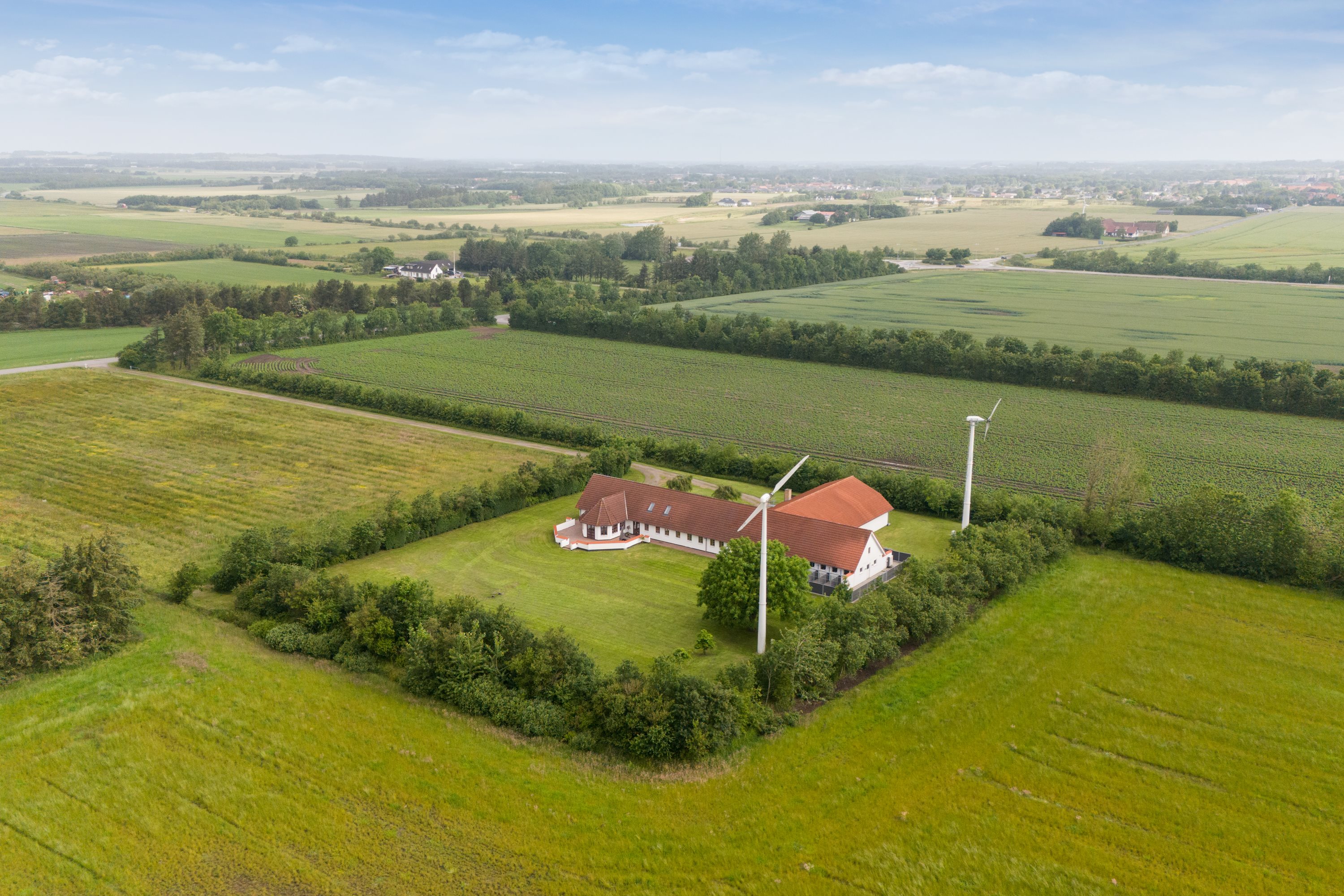 Strømmen til ejendommen kommer fra to husstandsvindmøller, der tilsammen producerer ca. 75000 kWh. Med bølgende marklandskaber som nærmeste nabo får I en fredelig base her på adressen. Samtidig er der cykelafstand til indkøb, fritidsaktiviteter og Søndergades skole. I får ydermere omtrent to kilometer til motorvejen.