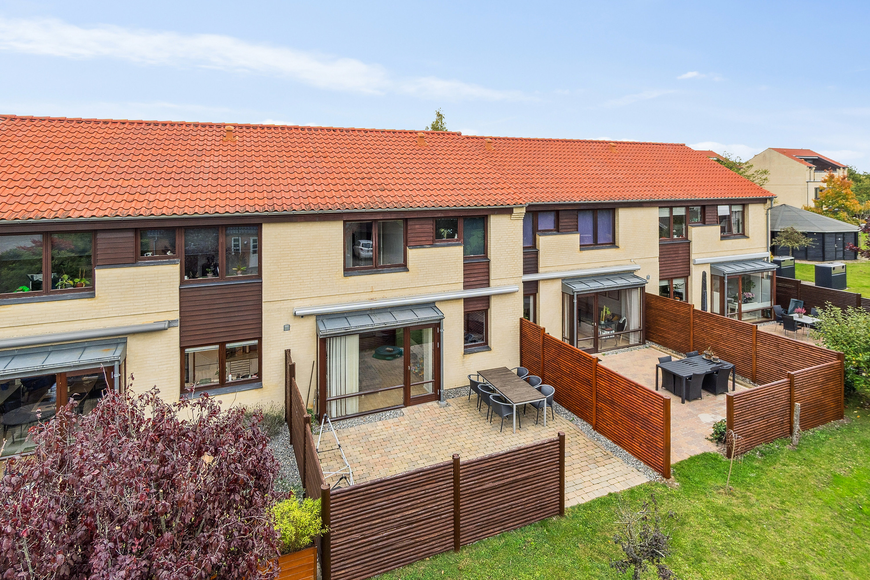 I finder dette flotte Bülow & Nielsen rækkehus på en børnevenlig lukket vej med godt naboskab, sø og legeplads i nærheden.