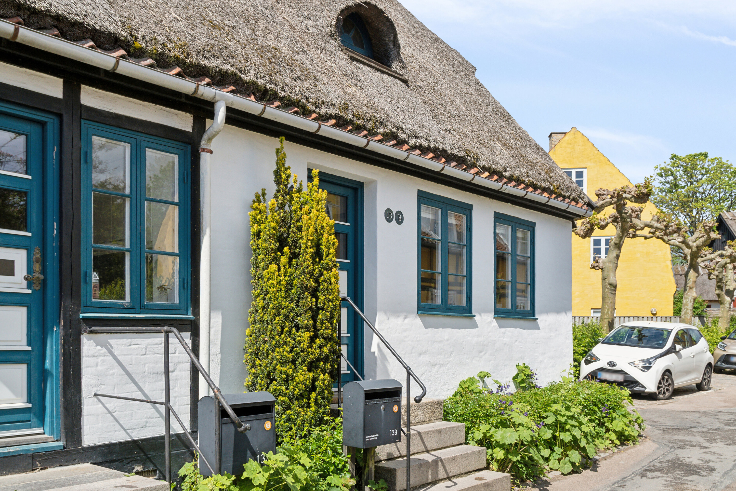Så skader det heller ikke, at ejendommen præsenterer sig så fuldendt - med bondehusvinduer, hvidpudsede facader og sortmalet bindingsværk under stråtaget. Asylgade 13B, som vi har fornøjelsen at udbyde til salg, er indbegrebet af Bondebyens charme, idyl og historie.