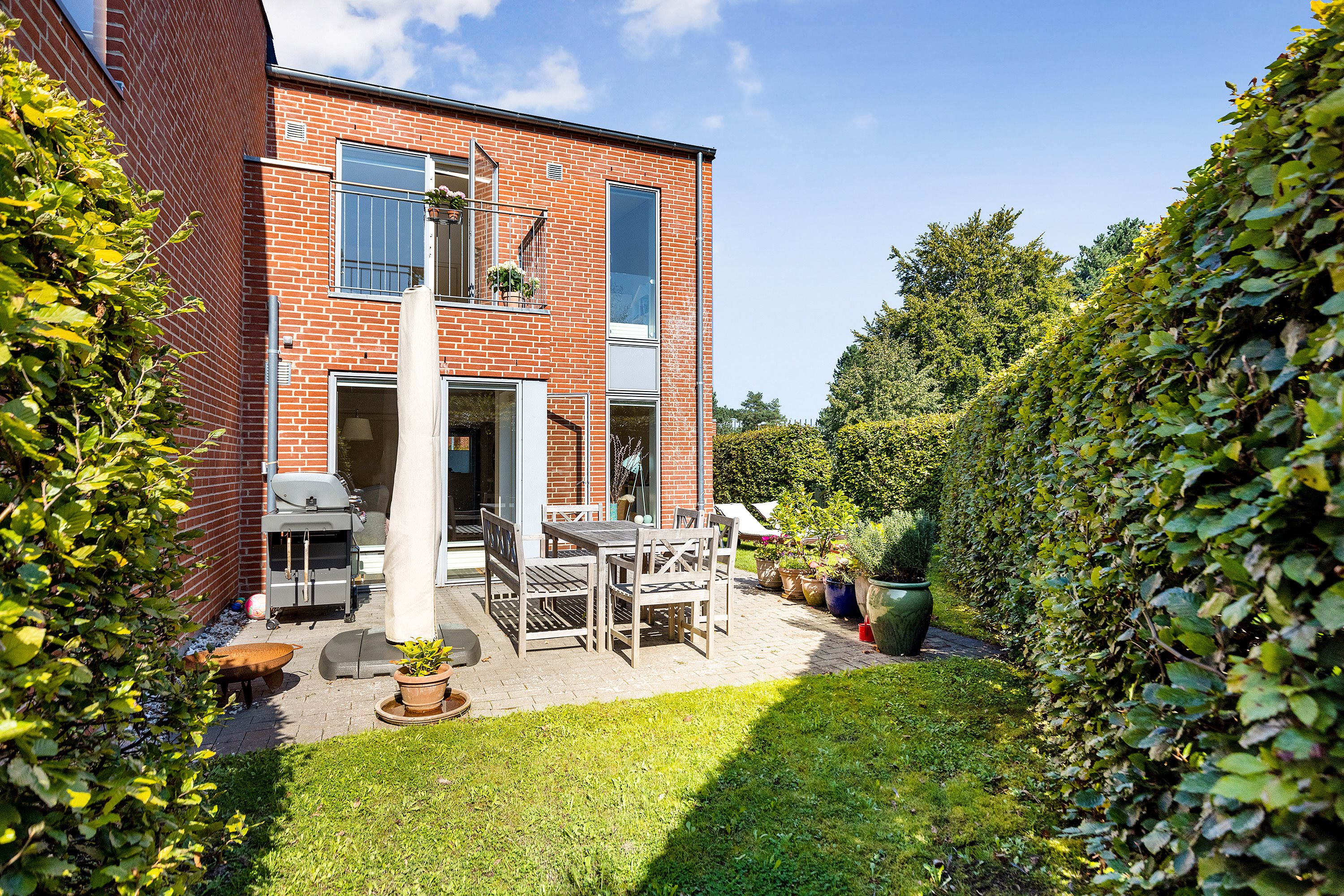 Moderne byhuse skal ikke nødvendigvis ligge i Ørestad eller på Bryggen, men kan med fordel også rykke ud i det grønne, hvor der er mulighed for at kombinere boligtypens børnevenlighed med store naturoplevelser tæt på. Et eksempel er dette enderækkehus på Viggo Jarls Vej 1 i Virum, hvor designet af boligens 149 kvadratmeter er lyst og nordisk, som det hører sig til i byhusene, men hvor omgivelserne er usædvanligt grønne og fredelige.