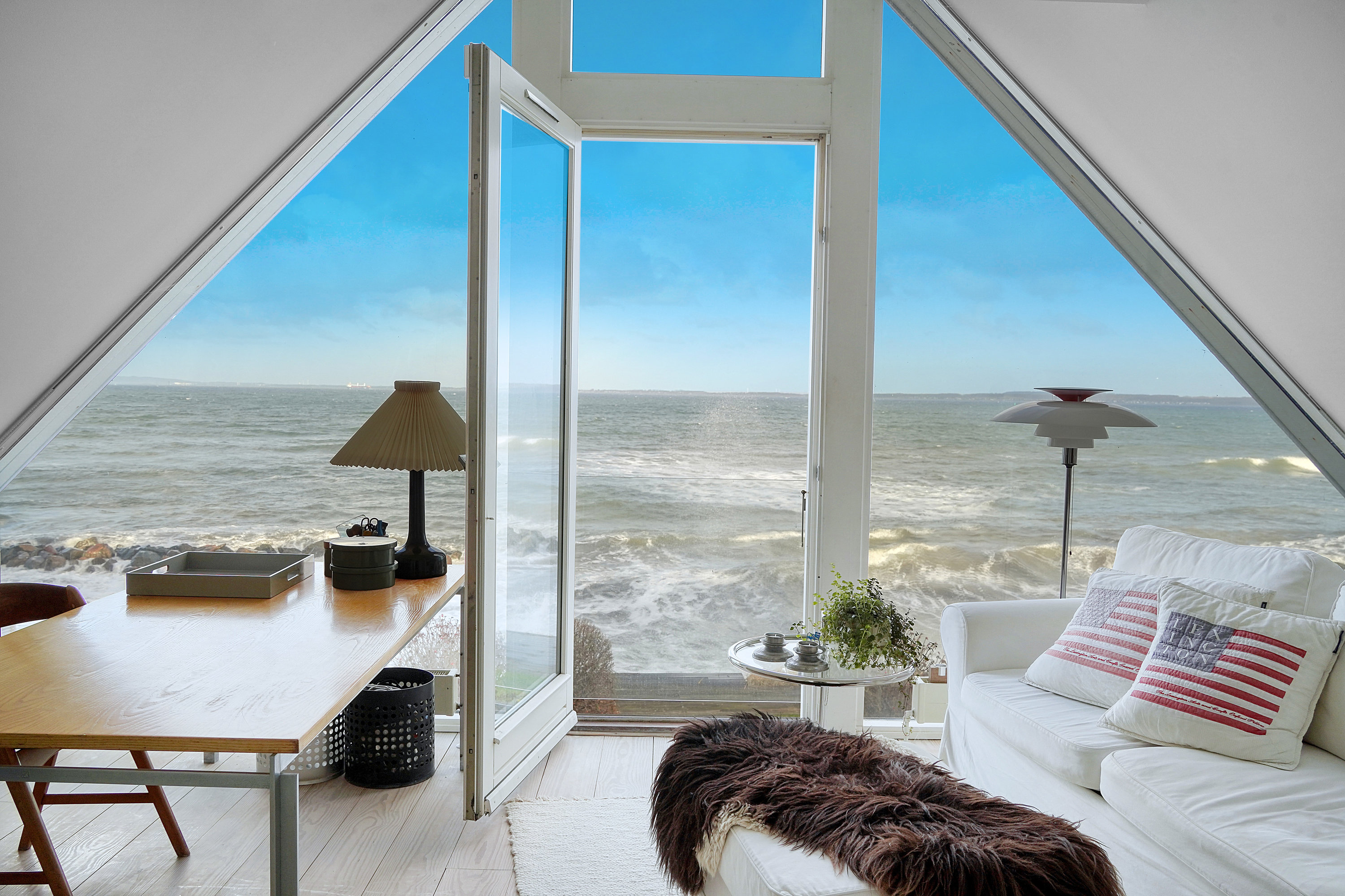 Herfra kan du åbne dørene til den lille franske altan og mærke havbrisen, mens du nyder morgenkaffen og ser solen stå op over Øresund.