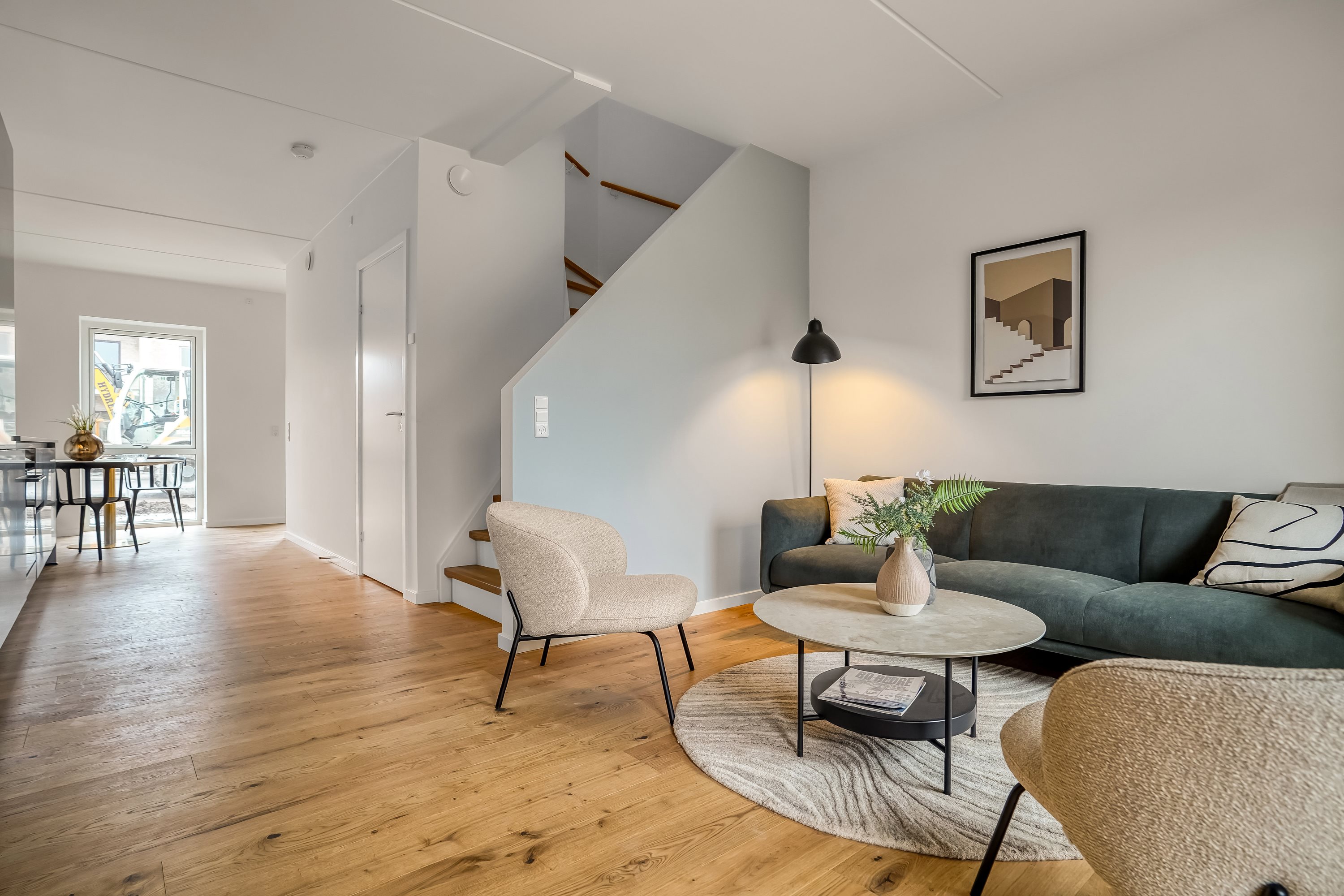 Denne nyopførte, indbydende rækkevilla kombinerer det bedste fra byliv og natur – en lækker, funktionel bolig i et område, der oser af charme og bekvemmelighed. Her får du et hjem, der er skabt til livets bedste øjeblikke, og hvor alt er designet med tanke på din trivsel.