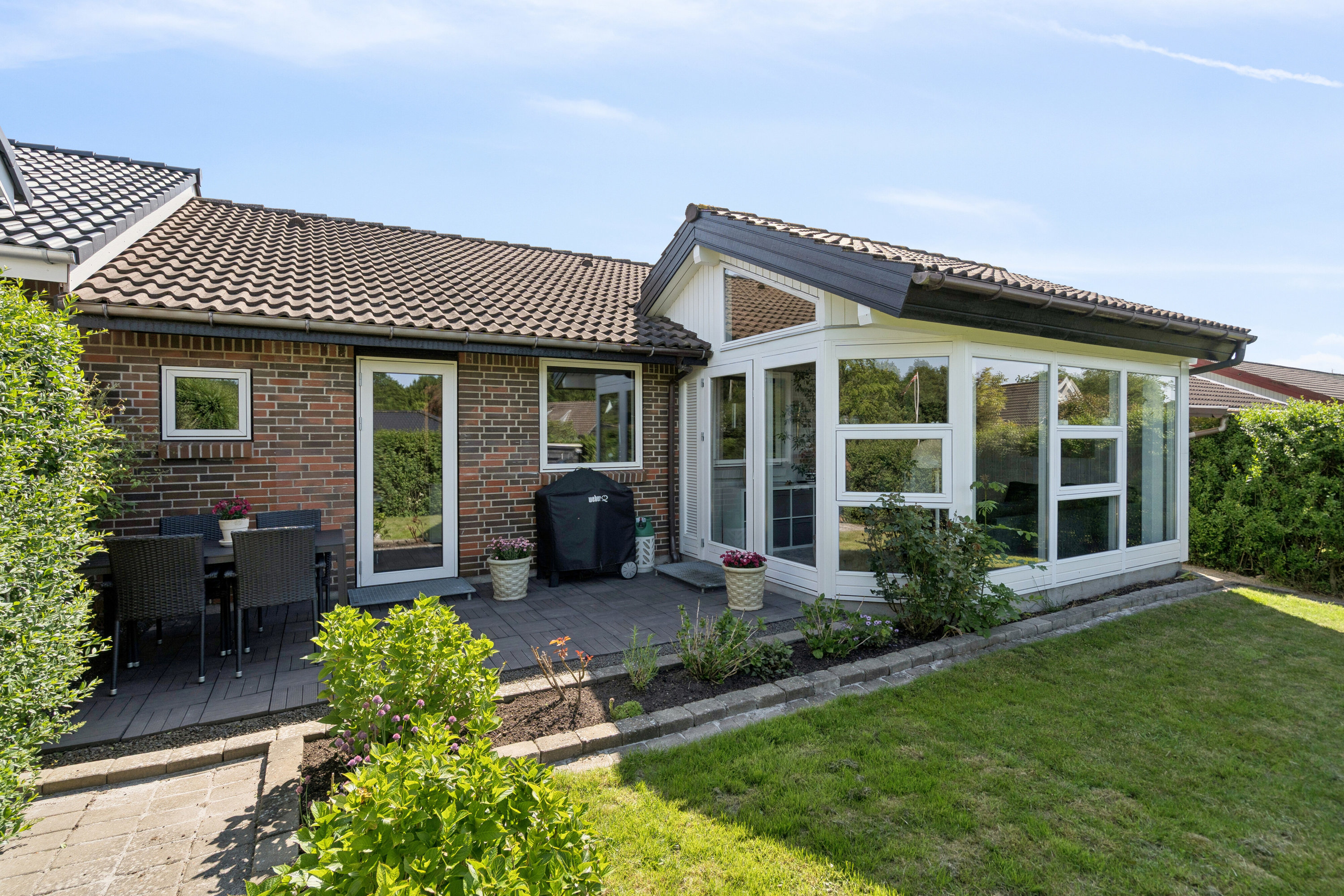 Udenfor venter en dejlig terrasse, hvor du kan nyde solrige dage og lune sommeraftener. Den velholdte have giver mulighed for leg og afslapning, og den ugenerede beliggenhed skaber en oase af ro midt i hverdagen. Her kan du skabe minder med familie og venner, mens du nyder det udendørs liv.