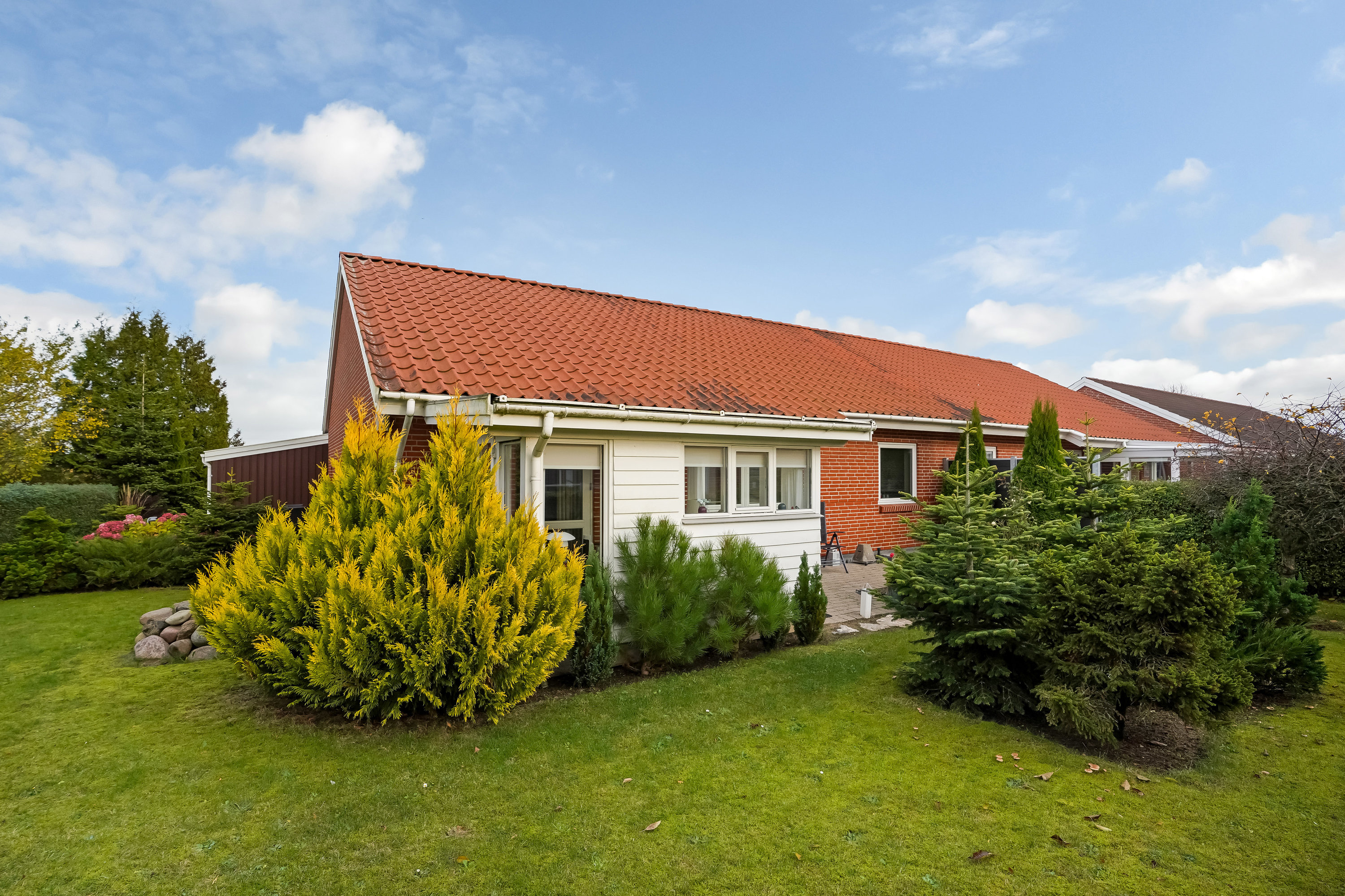 Den hyggelige opholdsstue har udgang til en hyggelig udestue, en solrig terrasse og en overskuelig have – perfekt til afslapning og samvær i det fri.