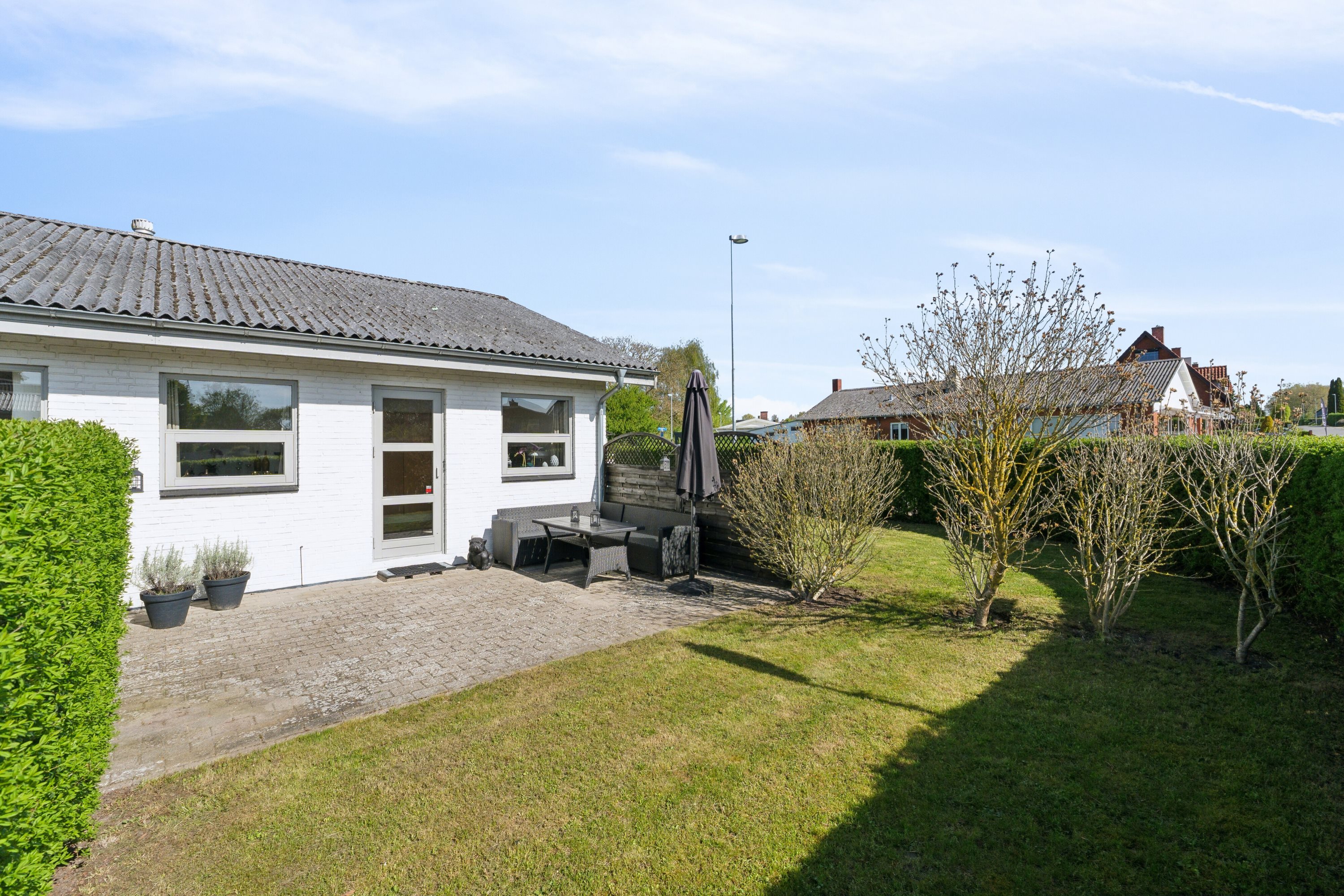 Udenfor inviterer den lukkede have til privatliv og afslapning, og her er der mulighed for at nyde solrige dage på det flotte flisebelagte terrasseområde. Terrassen udgør en forlængelse af boligens rum, og er det ideelle sted til udendørs spisning, afslapning eller sociale sammenkomster. Haven kræver ikke den store vedligeholdelse og er ideel for dem, der sætter pris på udendørsliv uden, at være bebyrdet med omfattende havearbejde.