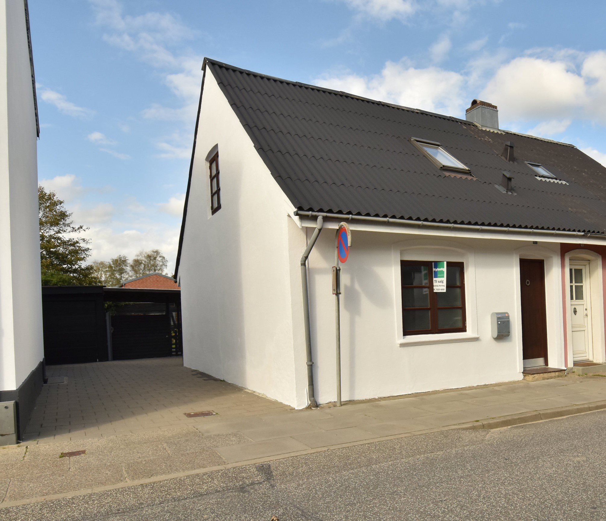 Byhuset er en del af et dobbelthus, der kun deler gavl. Og huset som sælges står fint og tiltalende, med helt nymalede hvide facader, plankeværker mv. Taget er ligeledes nyere og det samme gælder vinduerne. Boligen består af to etager, med samlet 84 m2 bolig. Indretningen er hvidmalet og har hhv. parket og massive planker på gulvet, undtagen i entre/bryggers og badeværelset, hvor der er klinker.