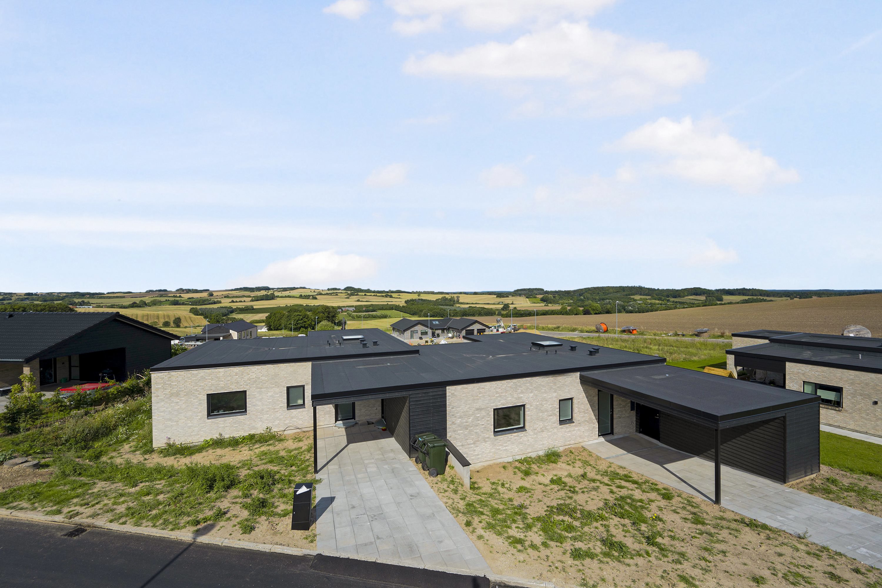 Boligen byder på en god og praktisk indretning. Du træder ind i en rummelig entré med adgang til et funktionelt bryggers – ideelt til hverdagens praktikaliteter. Herfra åbner hjemmet sig op til det store og lyse køkken/alrum, der fungerer som husets naturlige samlingspunkt. Her er der rigelig plads til både madlavning, samvær og hyggelige stunder – og direkte udgang til en skøn terrasse med udsigt over det åbne landskab.
