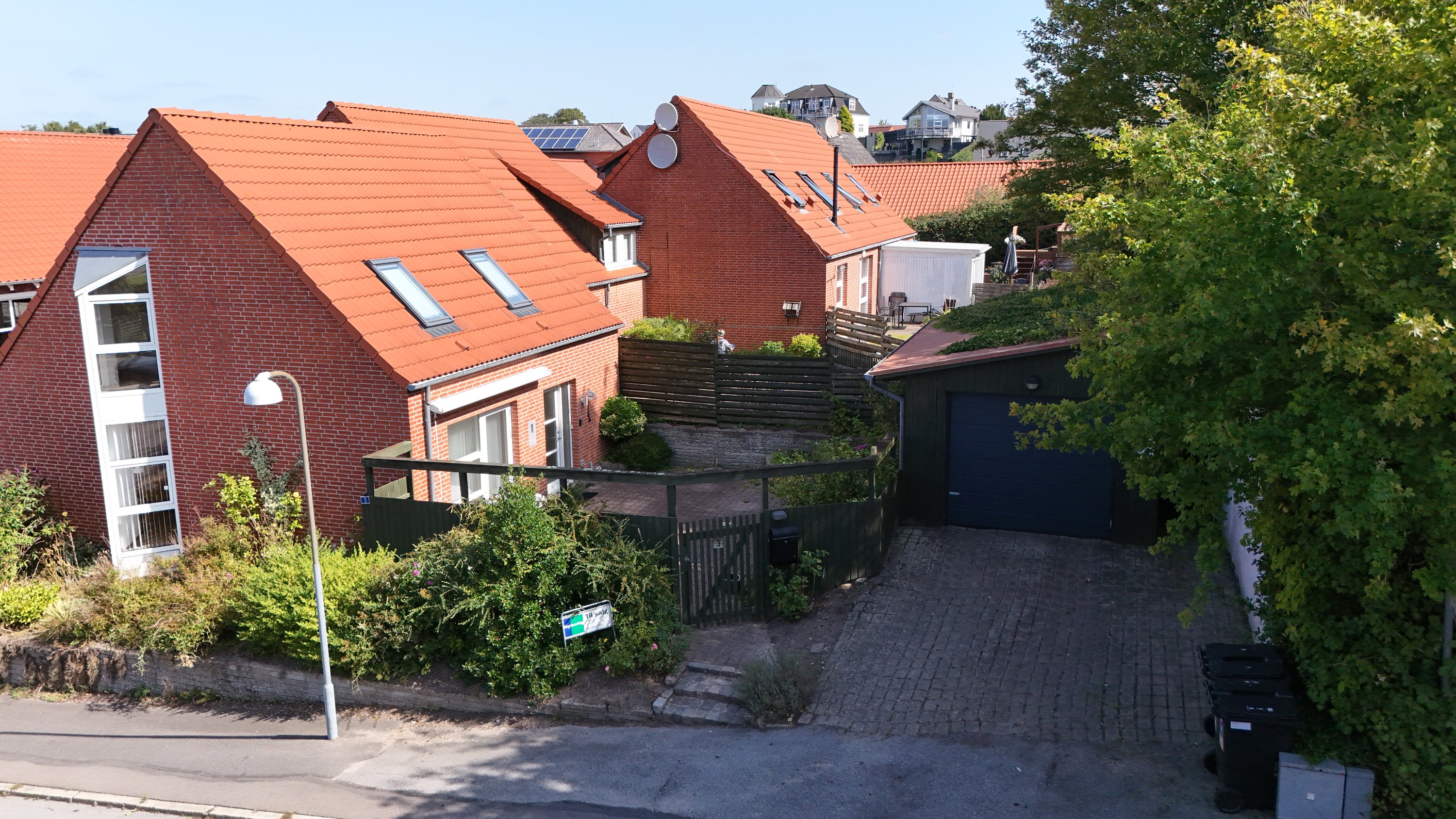 Udenfor kan du nyde den store, flisebelagte terrasse med markise, hvor du er i læ for vinden og kan tilbringe mange solrige dage. Haven er opvokset med blomster og grøn beplantning, og for dem med grønne fingre er der masser af muligheder for at dyrke haveinteresser og skabe et personligt udendørsmiljø.