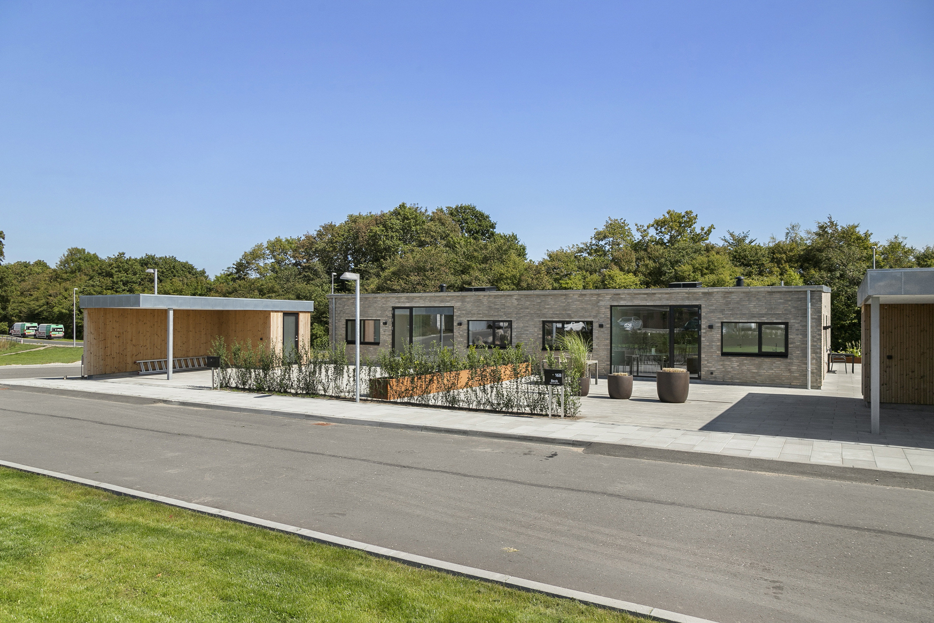 Der er carport og redskabsskur til hver lejlighed samt forberedt til elbil lader. (1 mindre husdyr kan evt. tillades?)