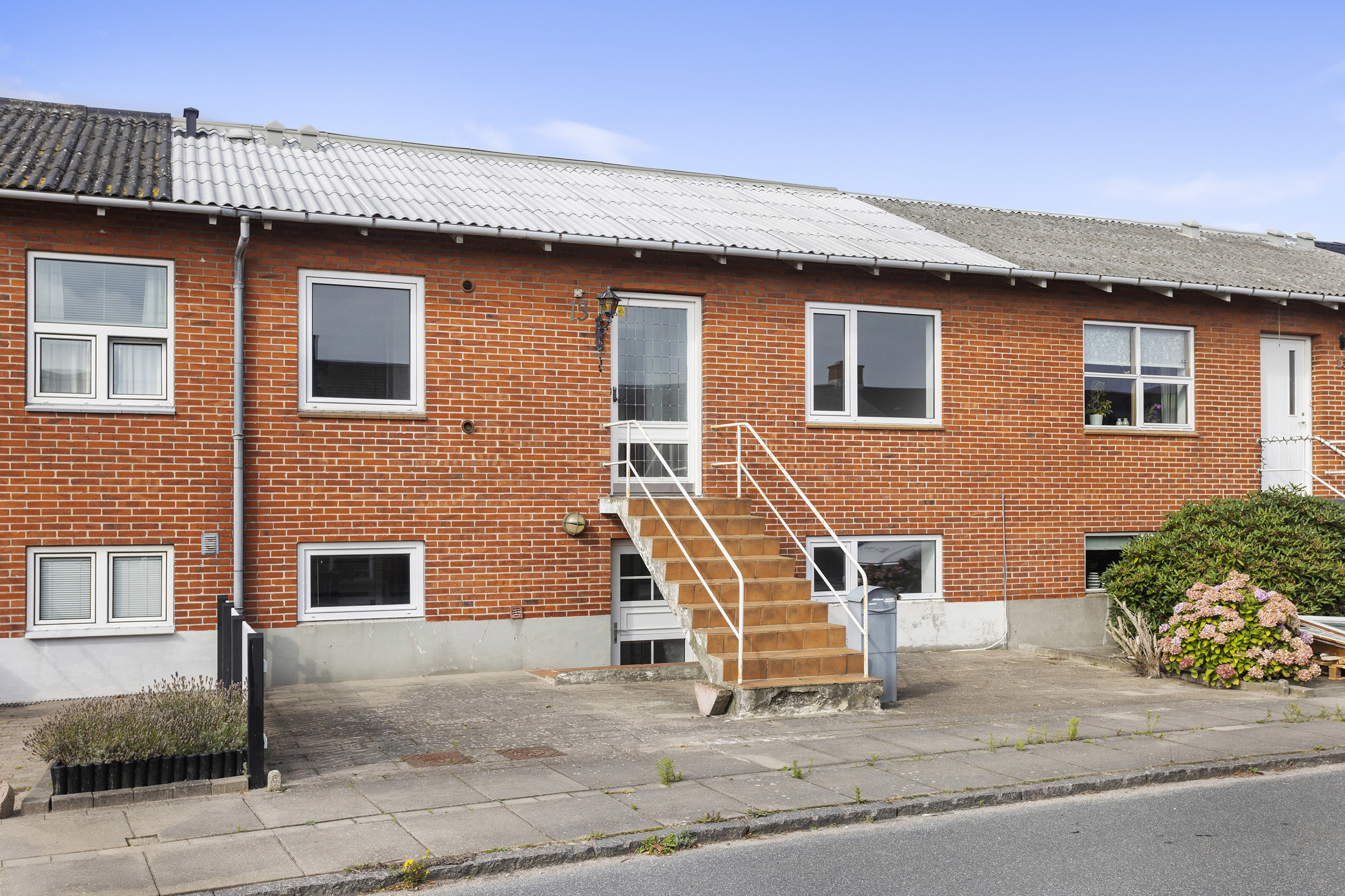 Rækkehus med klassisk rødt murværk, overdækket udestue og privat have