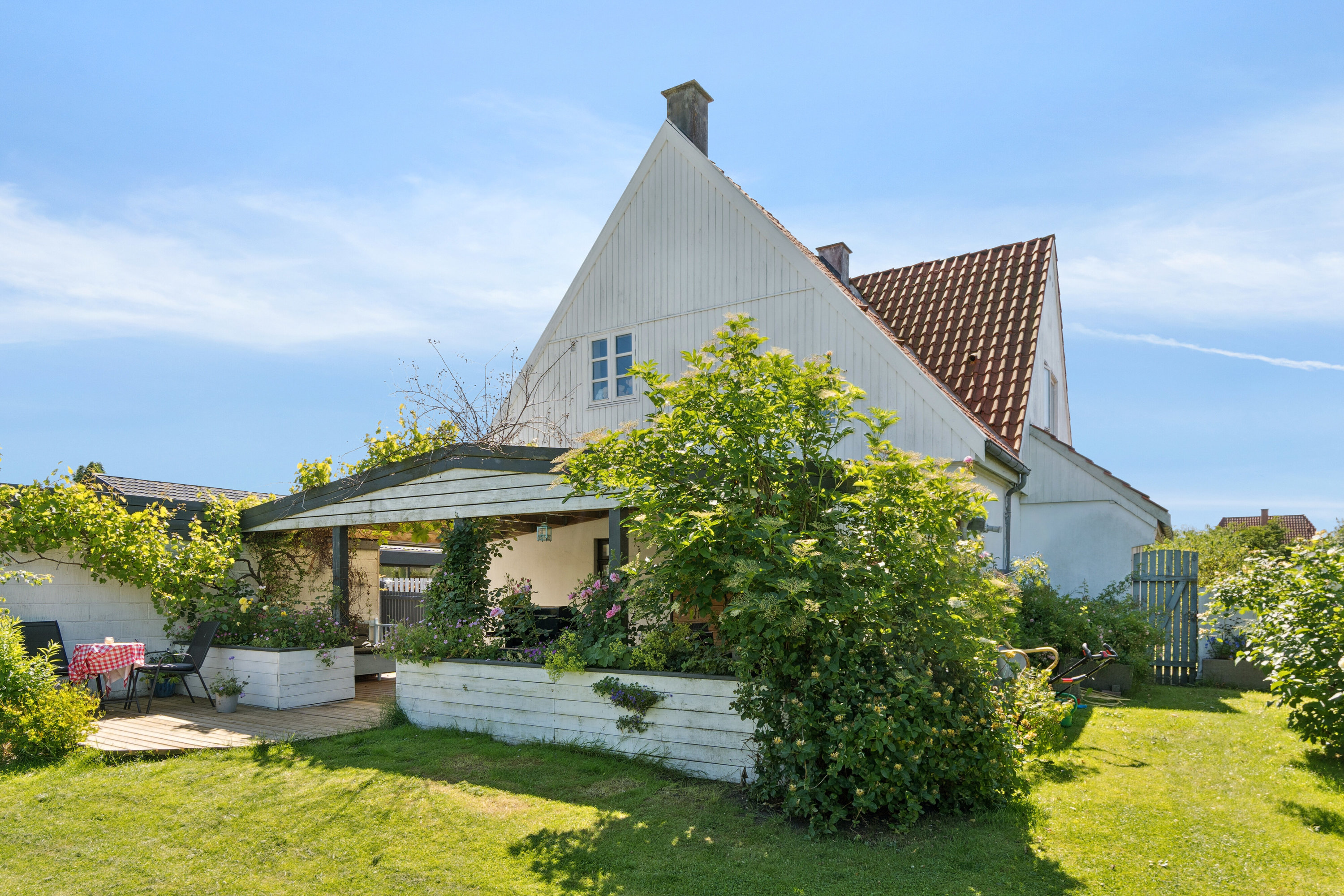 Udendørs byder ejendommen på en rolig, lukket baghave med solrige kroge hele eftermiddagen og aftenen. Den store terrasse, som er delvist overdækket om sommeren, inviterer til hyggelige stunder, som emmer af en helt særlig, hjemlig stemning. Forhaven præsenterer desuden en smuk facade ud mod den stille villavej, hvilket sætter prikken over i’et på det fantastiske uderum.
