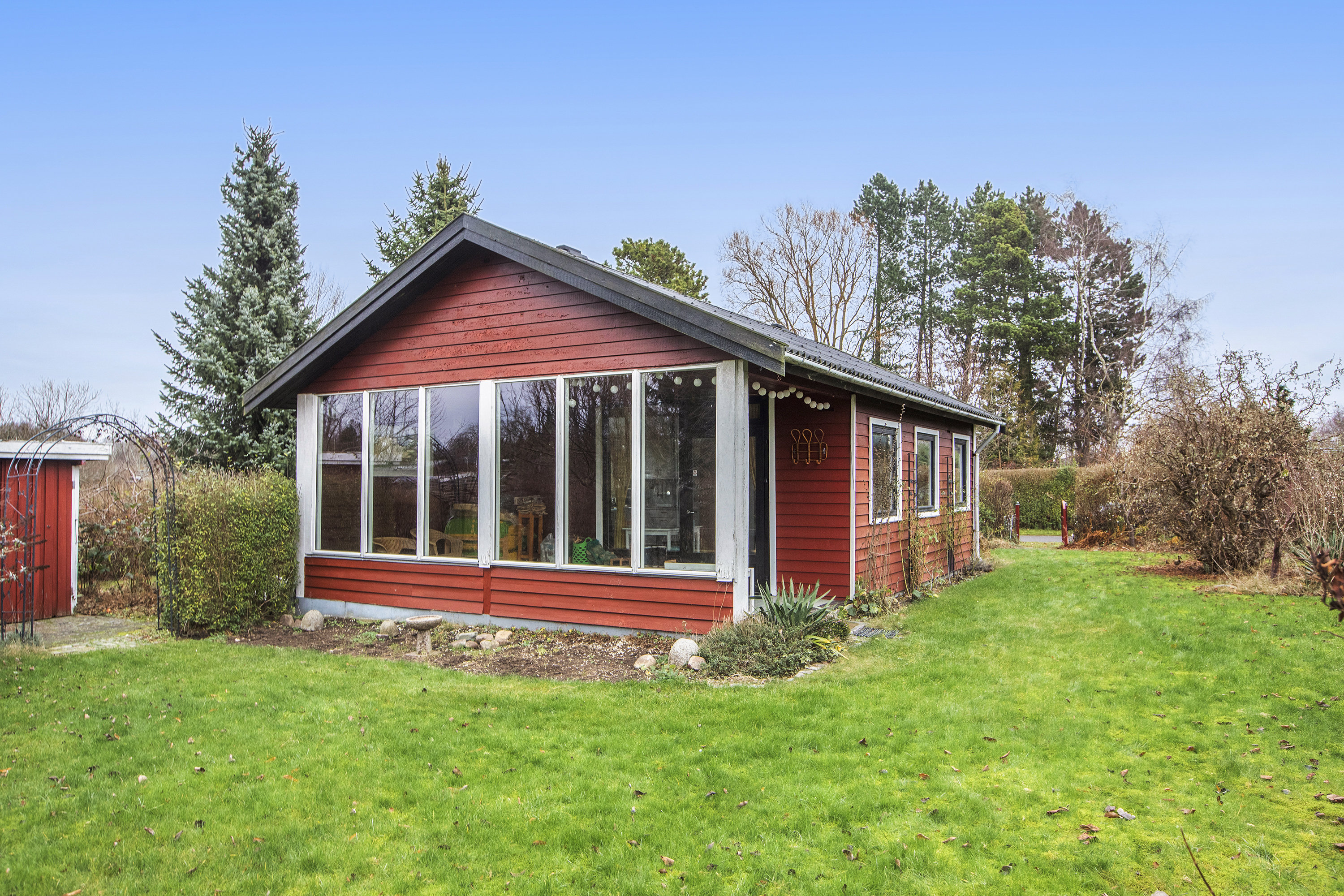 For enden af en stille, blind vej – helt ud mod det fredede, grønne bælte langs Harrestrup Å – finder du dette hyggelige kolonihavehus. Her får du en sjælden, ugeneret atmosfære, hvor ro, natur og lys går op i en højere enhed. Det perfekte sted til at trække stikket og nyde livet i både weekender, ferier og alle de spontane fridage, der fortjener et grønt åndehul.