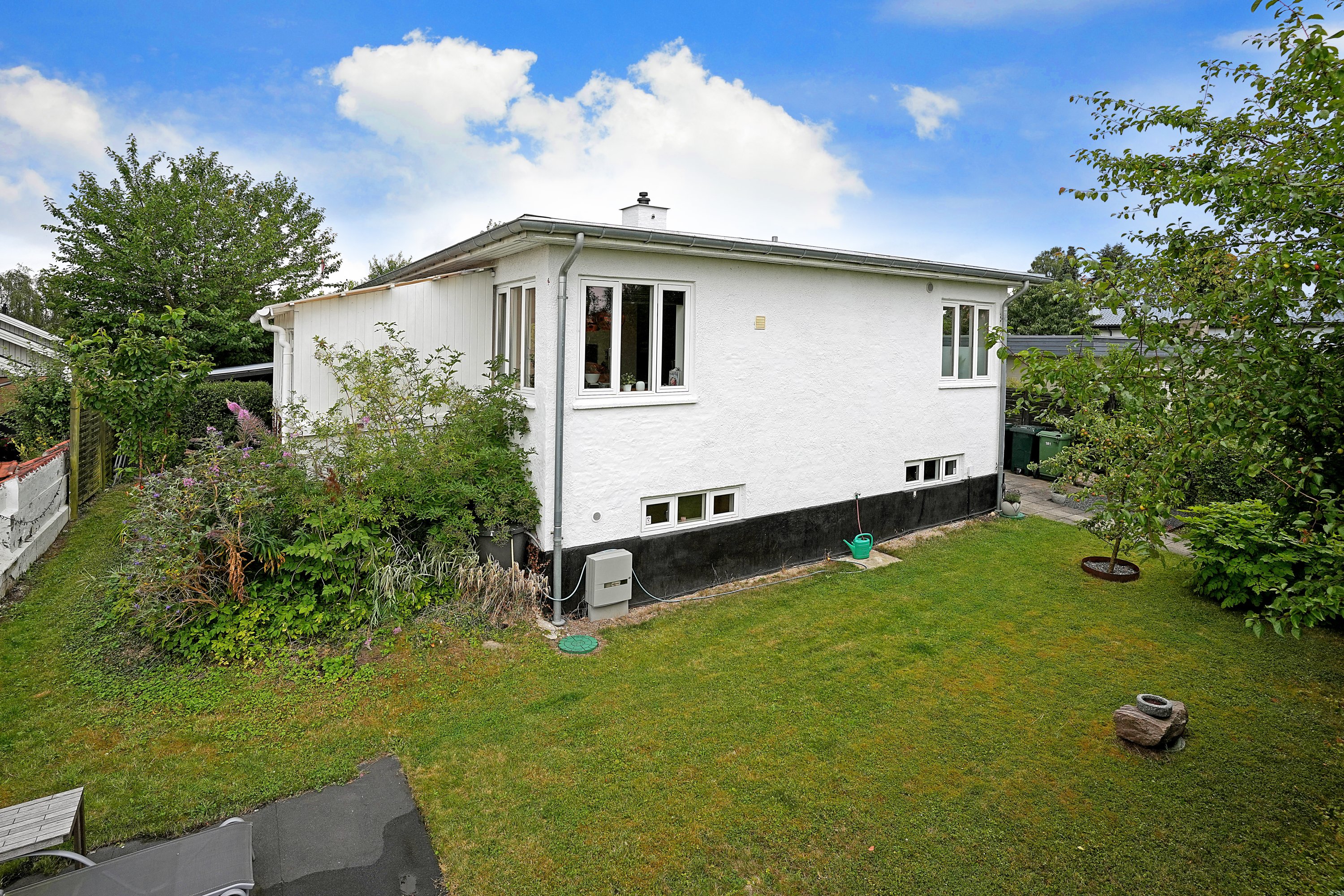 Udenfor finder du en dejlig, solrig terrasse og en frodig, privat have med masser af plads til leg, grillmiddage og grønne fingre. Haven er en lille oase, hvor både børn og voksne kan trives, og hvor du kan nyde sommerens stille morgener og lune aftener i rolige omgivelser. Helt specielt er grunden hævet i niveau fra vejen, hvilket giver ro, lys og en følelse af eksklusivitet.