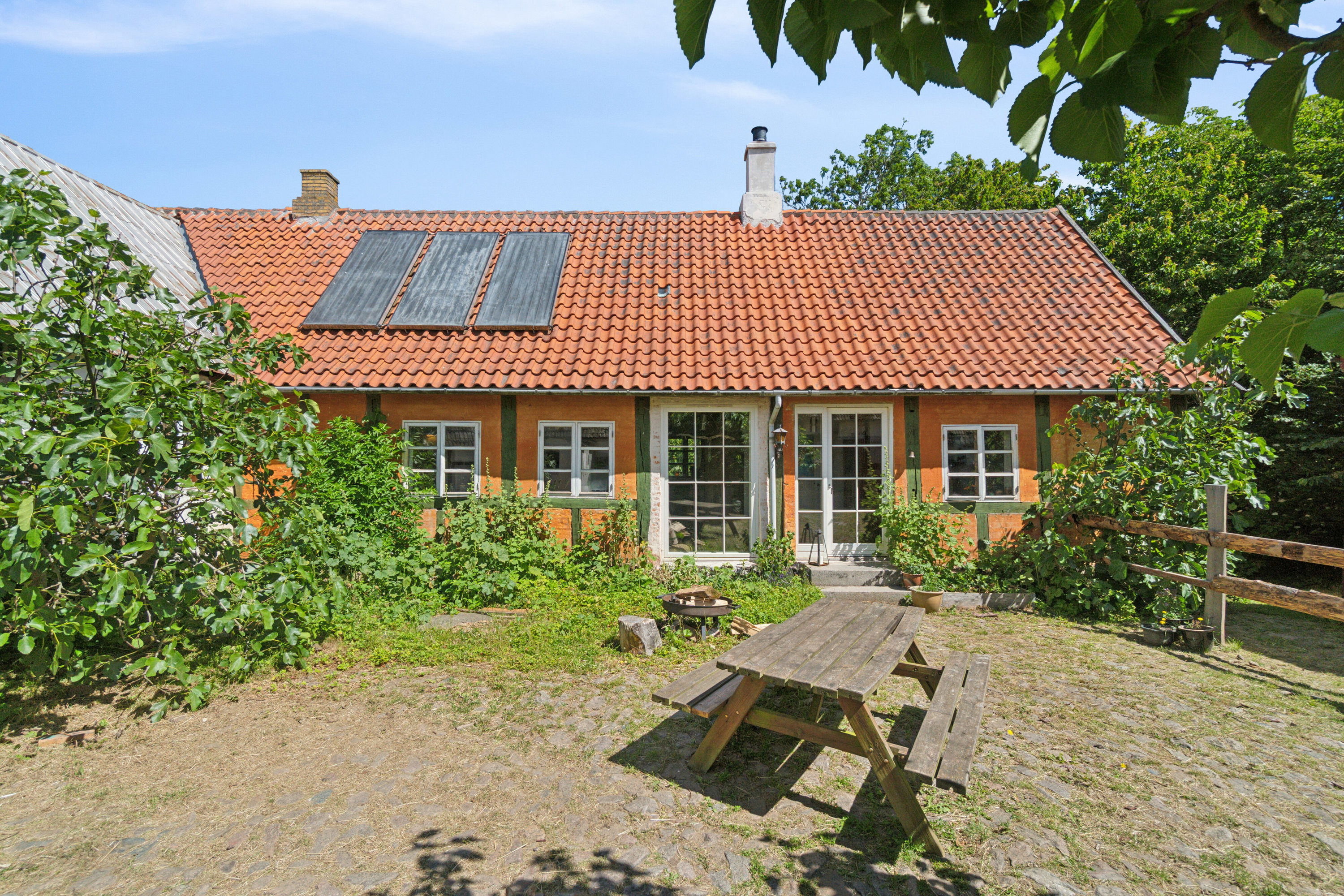 Det er i dejlige omgivelser i Rø, at I nu kan flytte ind i denne charmerende villa, der med sin bindingsværksfacade skaber karakter og stemning. Huset har 132 m2, der fordeler sig over én etage, mens I udenfor får en helt fantastisk stor grund på næsten to hektar med brugbare udbygninger.