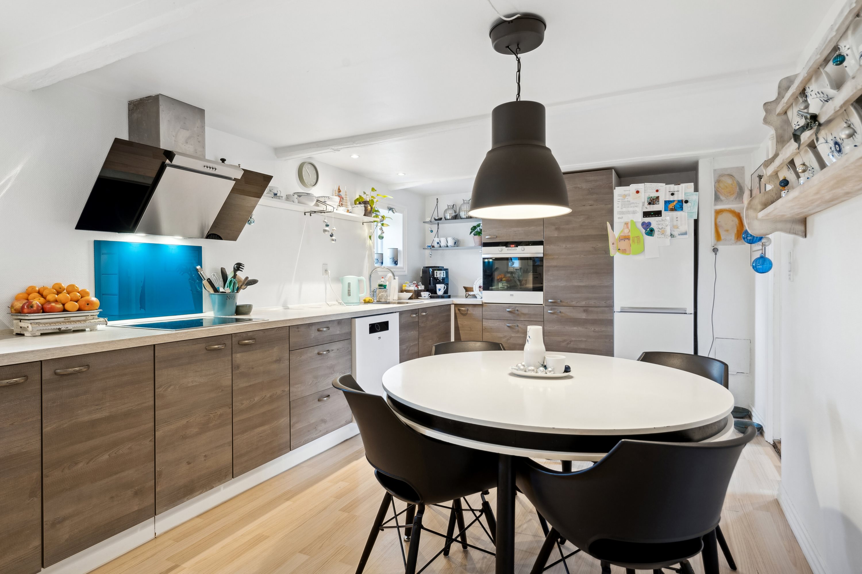 I får virkelig noget for pengene, da det fine stueplan ledsages af en spændende førstesal med potentiale. Stemningen er endda lys og indbydende med køkkenet og stuen som jeres naturlige samlingspunkter. Fritlagte bjælker vidner om den sjæl huset har, som stadig opleves i dag, trods de fine moderniseringer.