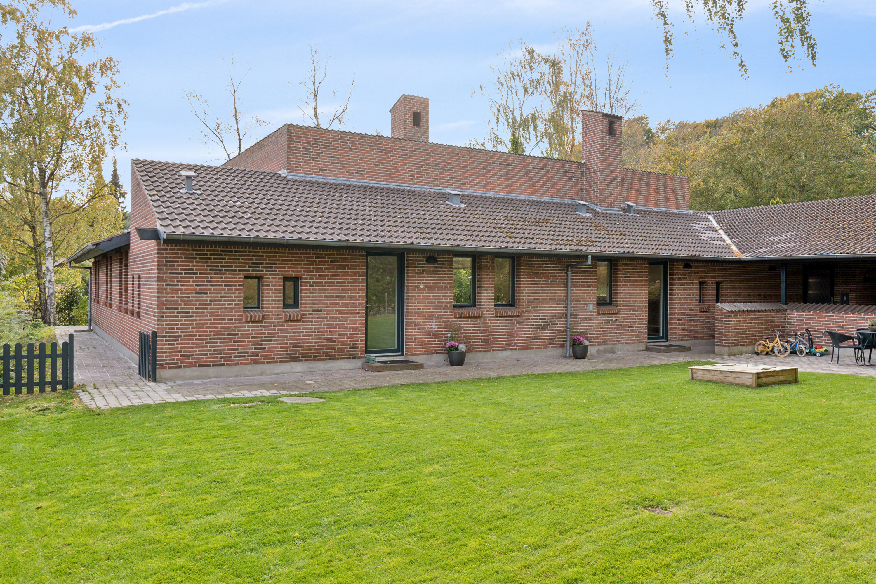 Udenfor venter en helt privat have med en jævn plæne, der breder sig ud bag store træer, samt det skønneste terrassemiljø, der smyger sig omkring huset. I kommer desuden til at bo blandt grønne områder og med gåafstand til skoven, mens alle byens tilbud er lige ved hånden. Efter godt en kilometer støder I på midtbyen, hvor en gågade fuld af handelsliv fører mod stationen, ligesom skoler, dagtilbud og fritidsaktiviteter alt sammen er en del af bybilledet.
