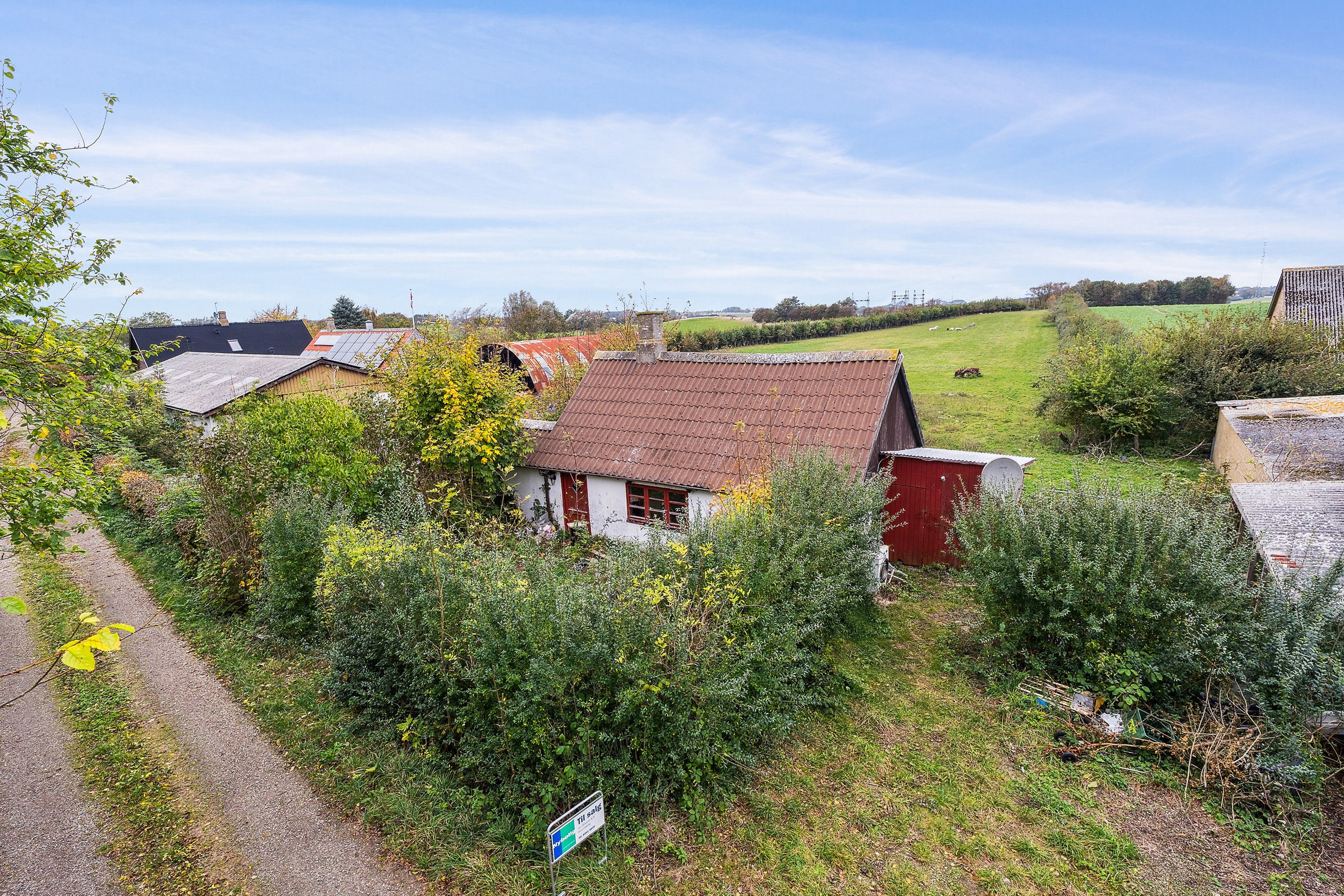 Fra stuen er der adgang til soveværelset, som har en god størrelse med til både seng og opbevaring. Fra entréen er der desuden adgang til et praktisk depotrum, hvor I eksempelvis kan etablere et badeværelse. Udenfor findes et ekstra skur, der kan bruges som værksted eller til yderligere opbevaring.