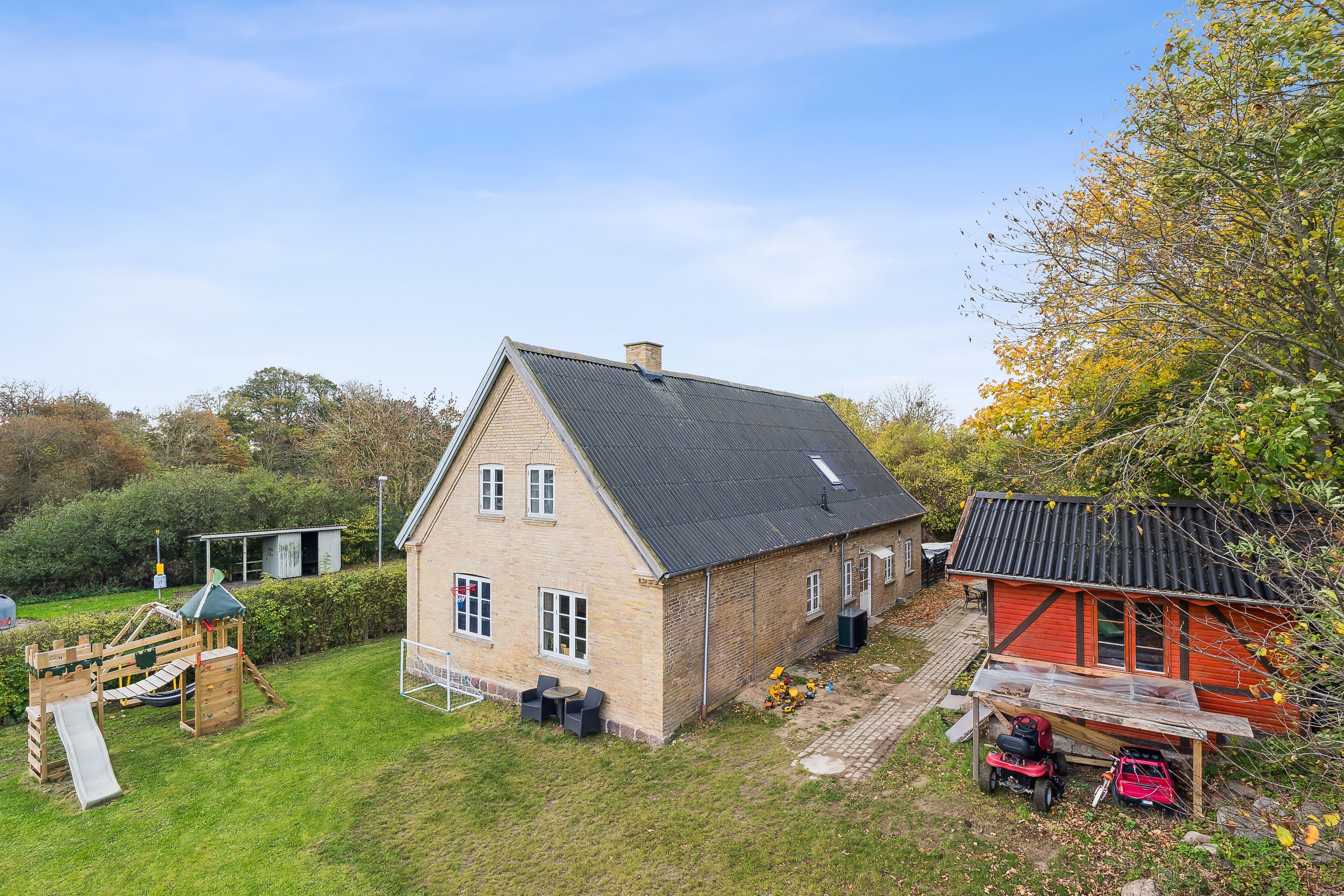 Det var i 2023, at haven gennemgik en større forvandling, så den nu også er nem at holde, og I kan bare nyde livet på terrasserne med smuk udsigt. Samme år er der nedgravet en faskine. I har en god, stor indkørsel og et skur til alle haveredskaberne.