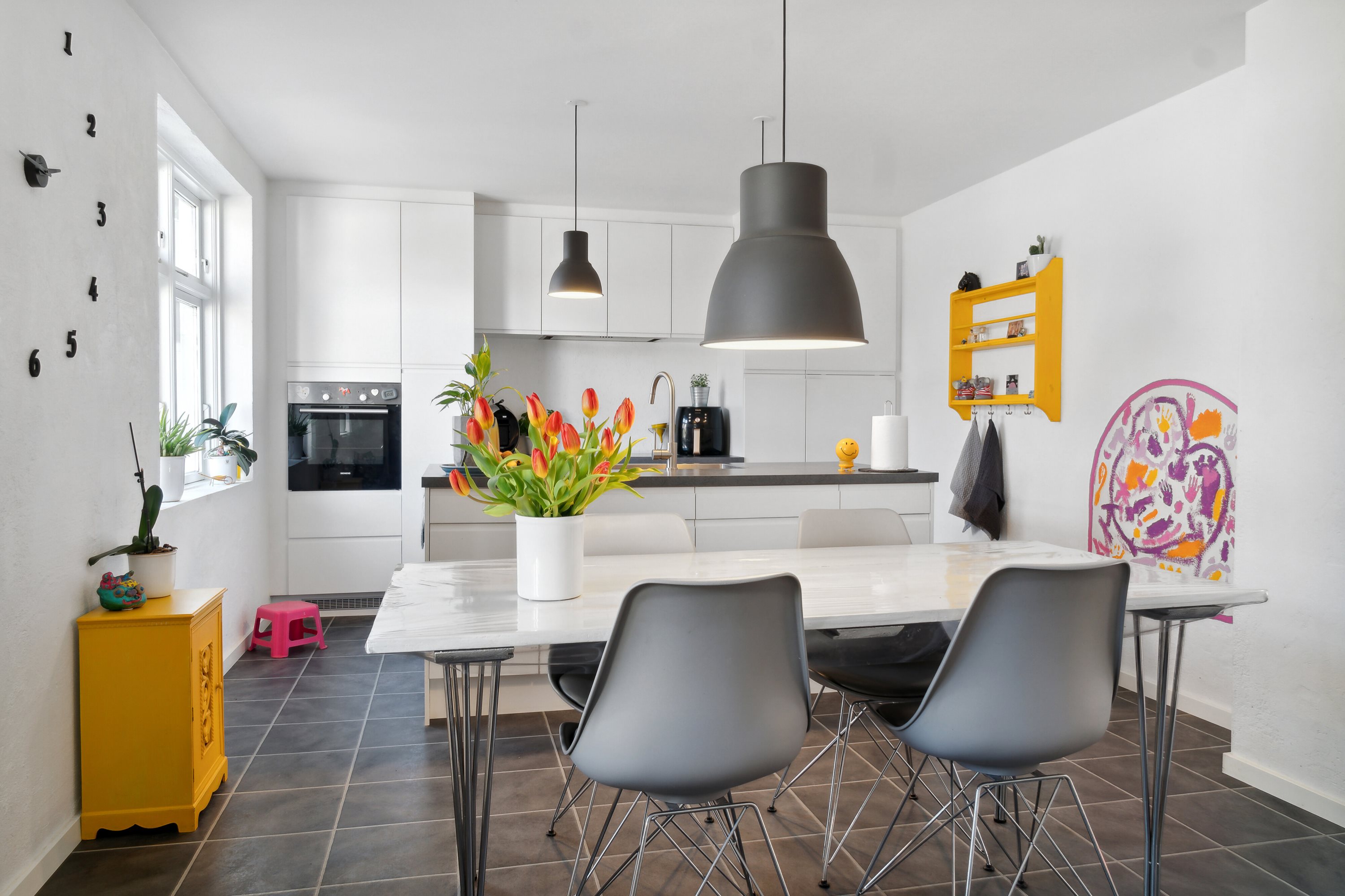 Villaen tager imod jer med en flot, lys facade, og indendørs venter endnu flere højdepunkter. Køkken-alrummet er moderne med grebsfrie elementer og en smart halvø, og det er nemt at smutte ud på terrassen via baggangen. Tilstødende køkken-alrummet står stuen klar til mange hyggelige stunder, og herinde mødes I også af en tiltalende atmosfære. Stueplanet fuldendes af entréen med plads til sko og jakker og brusebadeværelset med opbevaringsmuligheder. Går I ovenpå, er der fire indbydende værelser, så I kan trække jer tilbage i skønne rammer.