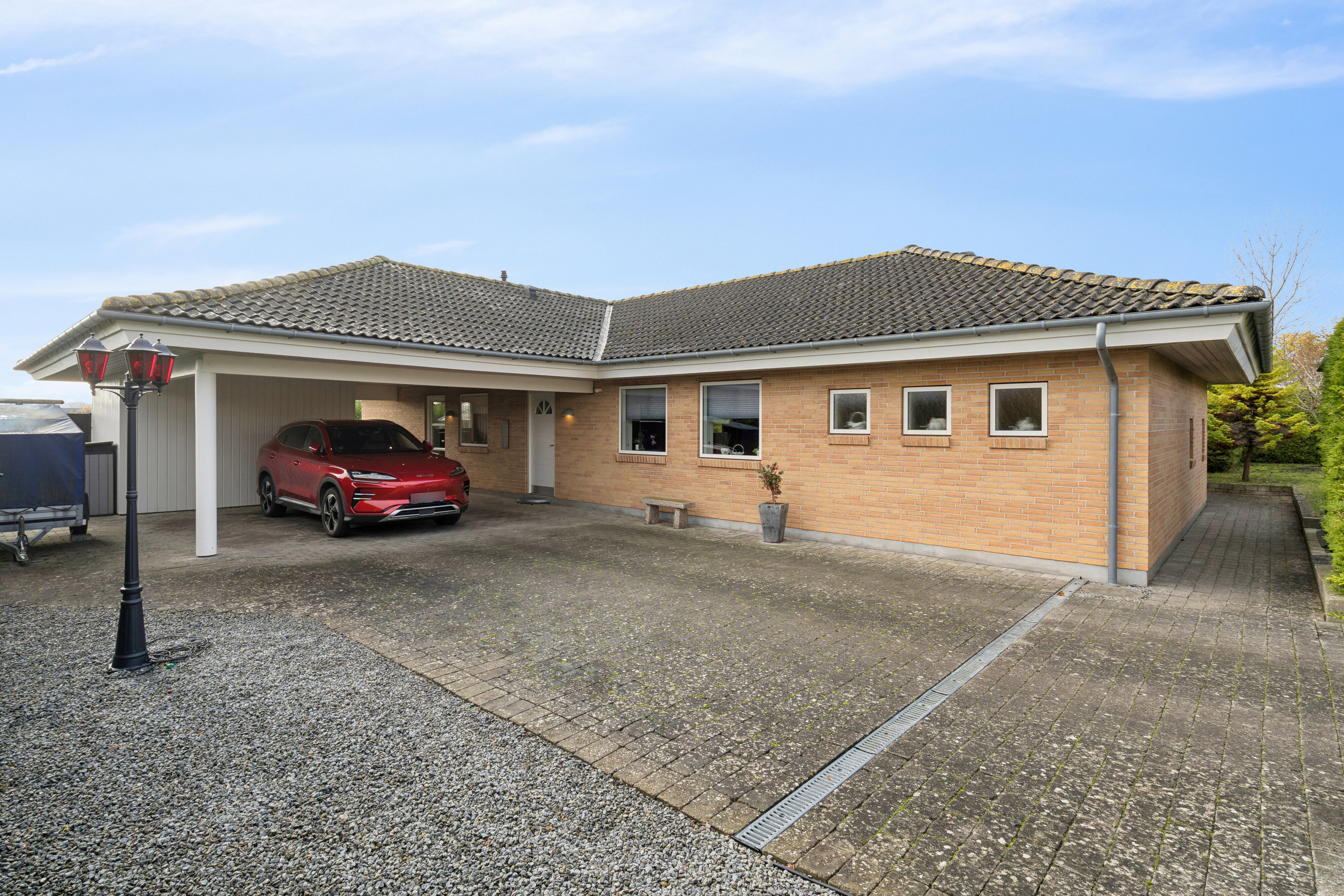 Integreret dobbelt carport - stor gårdsplads
