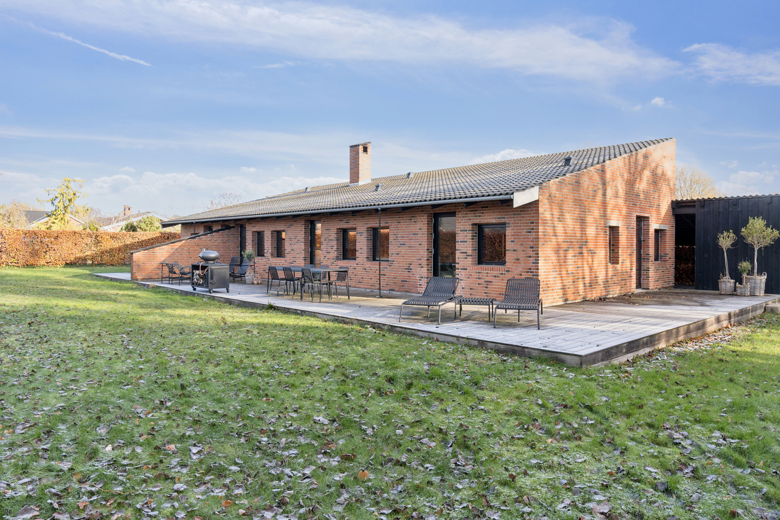 I Næstved møder I en arkitektonisk gennemført villa, hvor materialevalg, linjer og funktionalitet går op i en højere enhed. Huset fremstår med et moderne og tidløst udtryk i flotte mursten og med en planløsning, der både rummer plads til familieliv og ro til fordybelse.