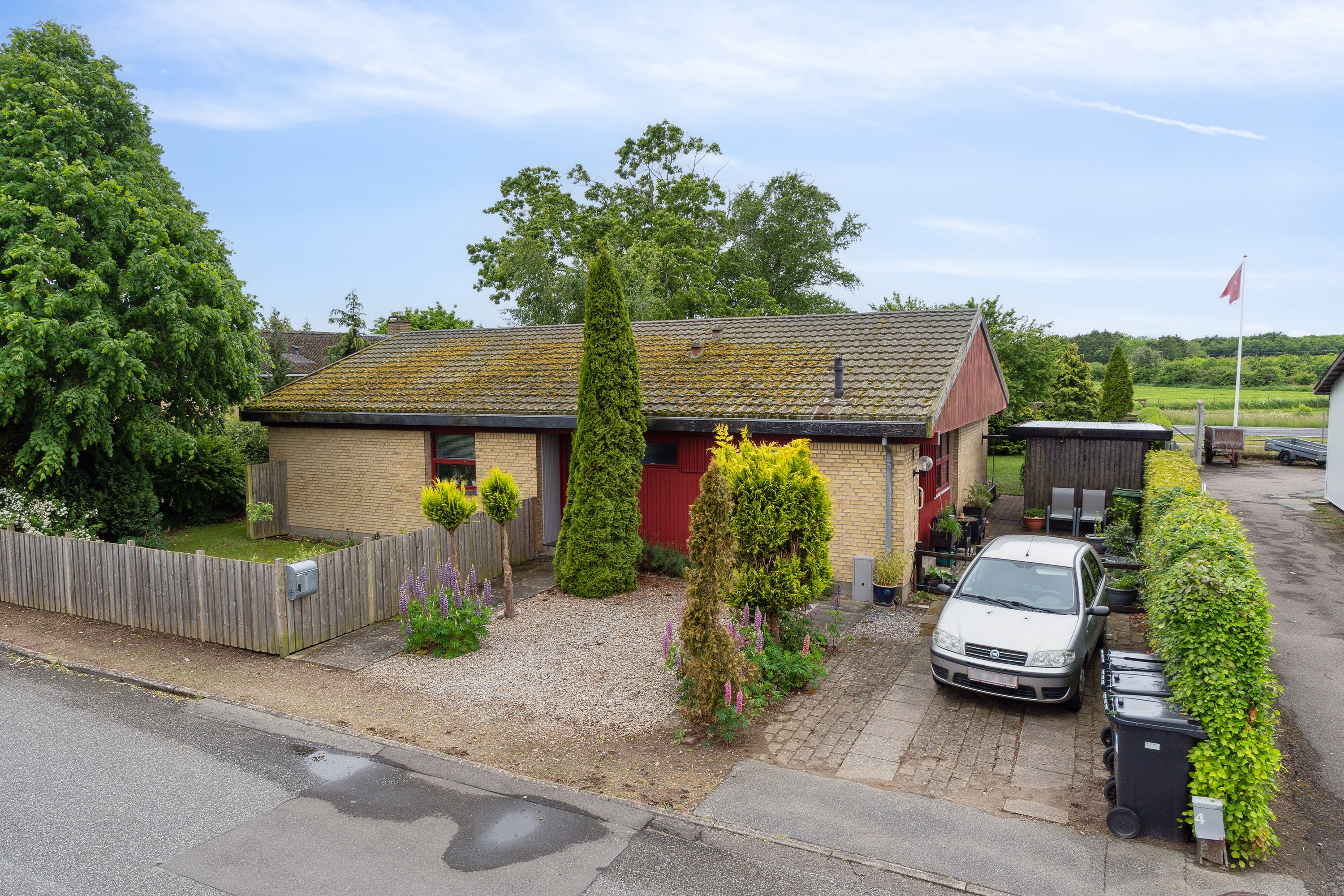 Udenfor venter en smuk have anlagt med omtanke. Terrassen, der ligger afskærmet mellem huset og skuret, bliver hurtigt jeres foretrukne samlingspunkt – en solrig oase, hvor I kan nyde både udsigten og solen i fred og ro. Grunden åbner sig mod grønne enge og marker, hvilket giver en følelse af rum og ro, samtidig med at hverdagens praktiske gøremål er let tilgængelige. Indkøb ligger blot et par hundrede meter væk, og skole, dagtilbud og fritidsaktiviteter nås på en kilometer. For pendleren eller bylivet er bussen lige rundt om hjørnet og bringer jer til Vordingborg centrum på blot fem minutter.