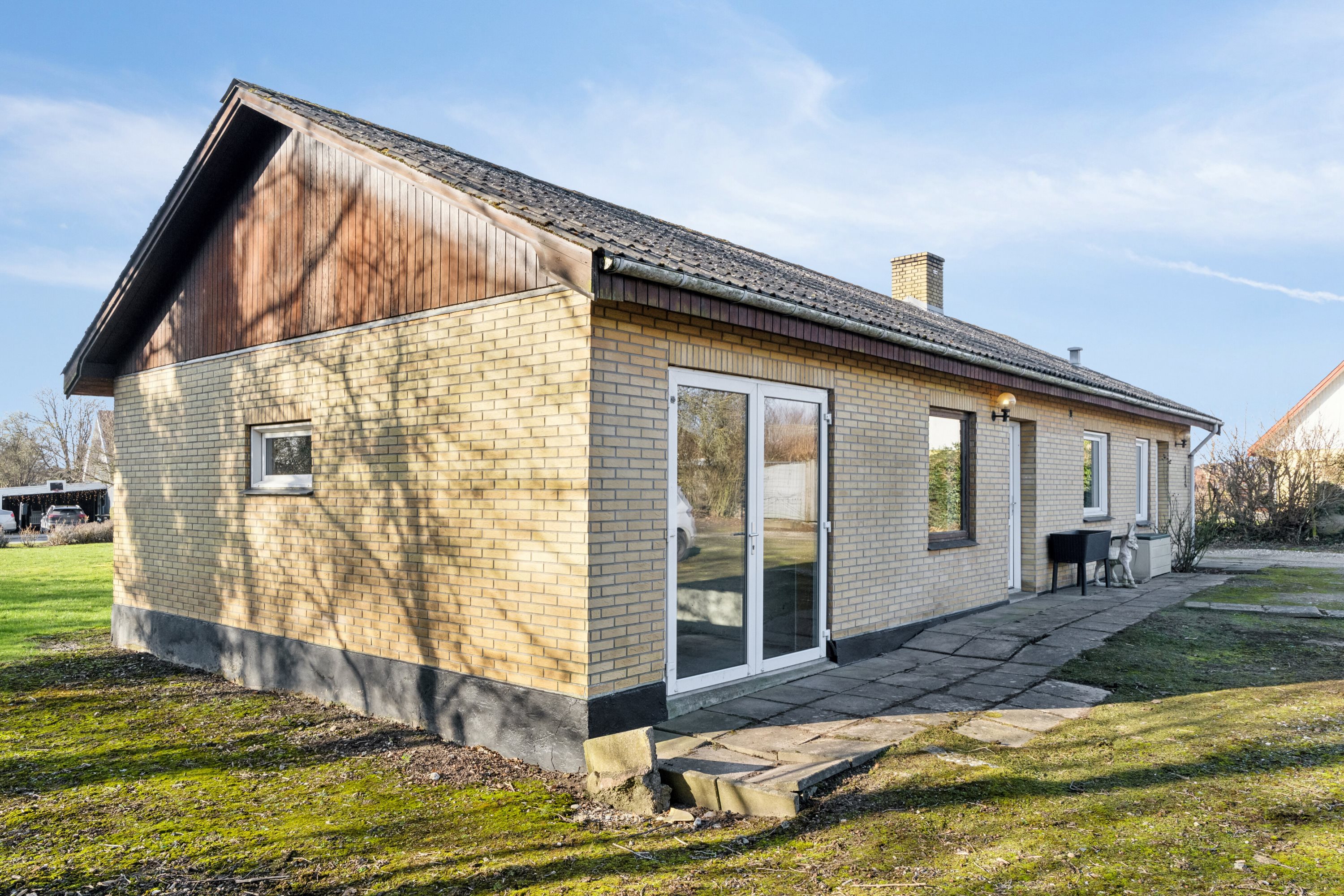 Udenfor er haven let at passe med græsplæne og hyggelig beplantning, og gårdspladsen giver massere af plads til biler, leg eller andre aktiviteter. Her kan I virkelig nyde udelivet i rolige og private omgivelser.
