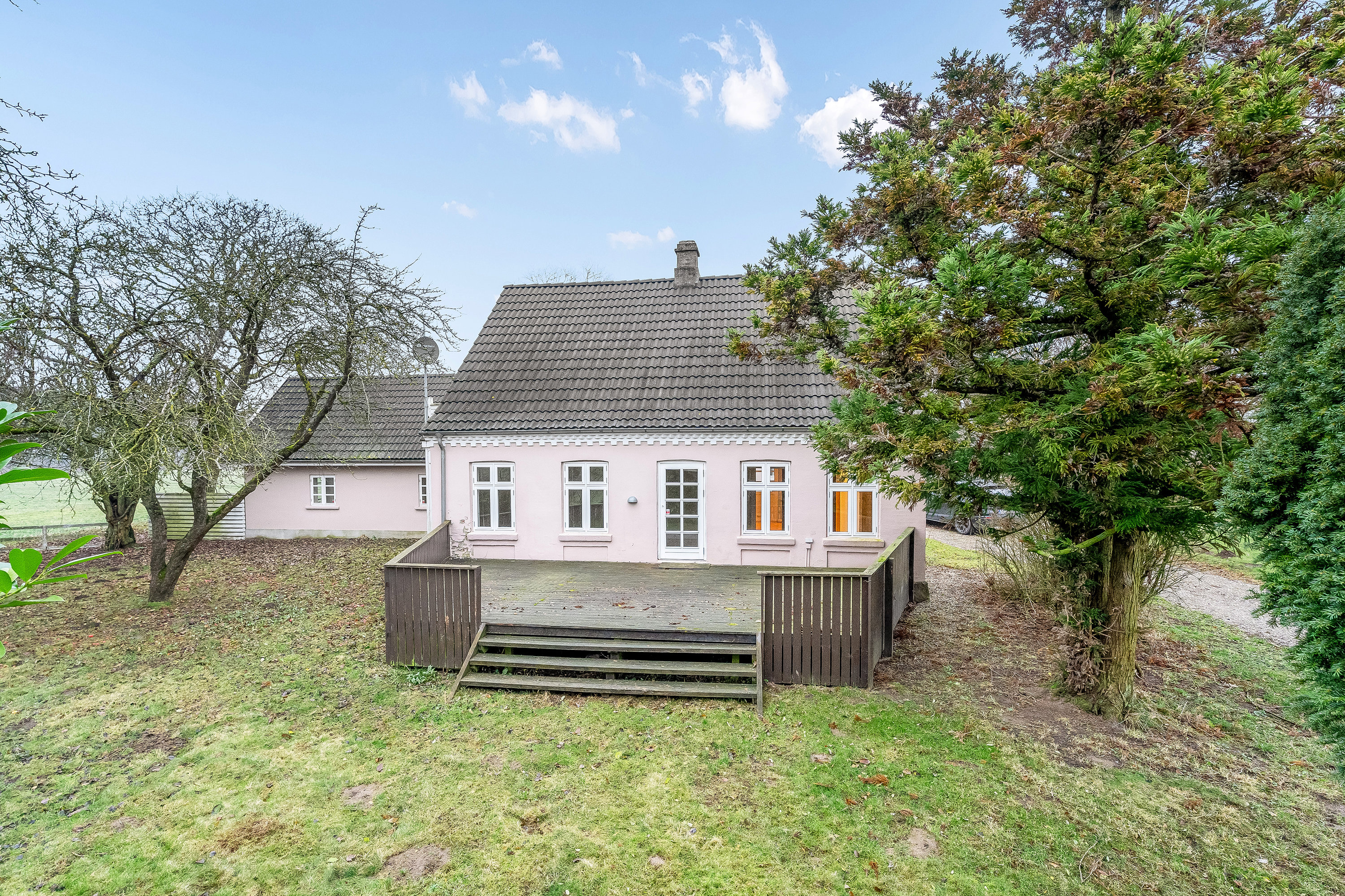Grunden byder på en flot, ældre have med opvoksede træer og buske, der skaber en hyggelig og privat atmosfære. Den småstensbelagte indkørsel og gårdsplads fuldender helheden og giver ejendommen et klassisk landligt præg.