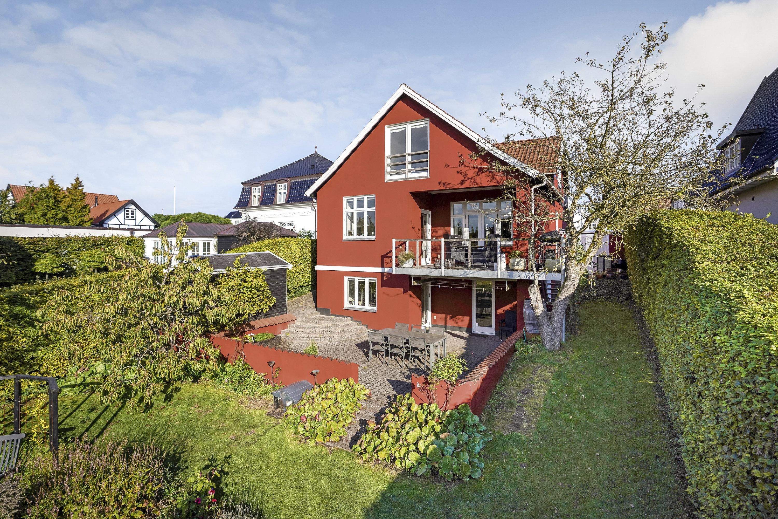 Ejendommen er opført med en harmonisk tilbygning fra 2004, som på smukkeste vis binder den klassiske villa sammen med en moderne, lys og funktionel boligdel.