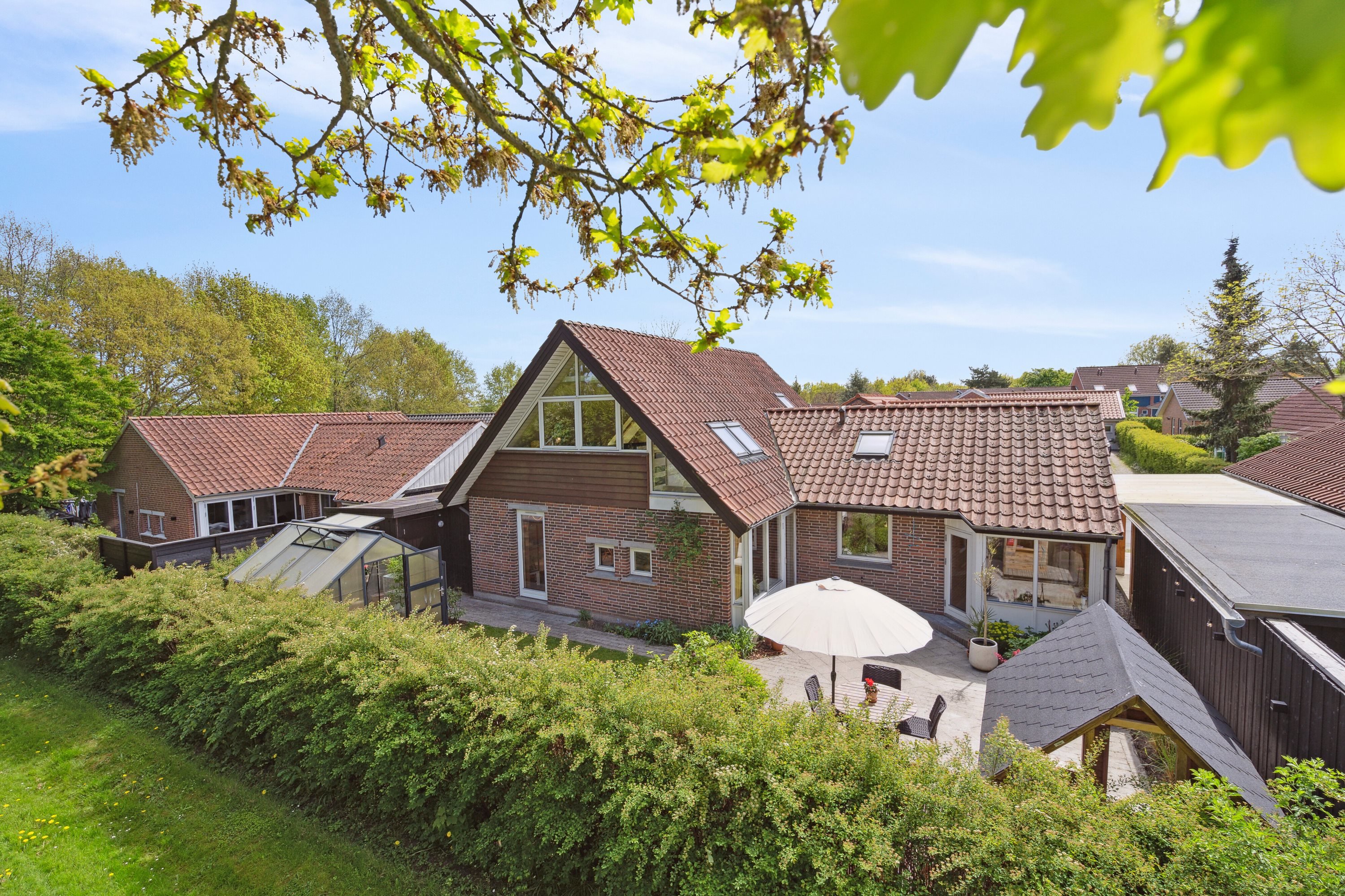 Huset har flere plads til glæde både ude og inde. Den tætte, solvendte terrasse er et centralt samlingspunkt, der skjules bag en velafskærmet hæk. Her kan man nyde morgenkaffen eller middagen i rolige omgivelser med plads til både spisning og afslapning. Haven rummer et legehus og flere grønne områder med plads til hobbyaktiviteter. Desuden indebærer ejendommen en garage og et separat værksted, der sikrer god plads til opbevaring eller værkstedsbrug.