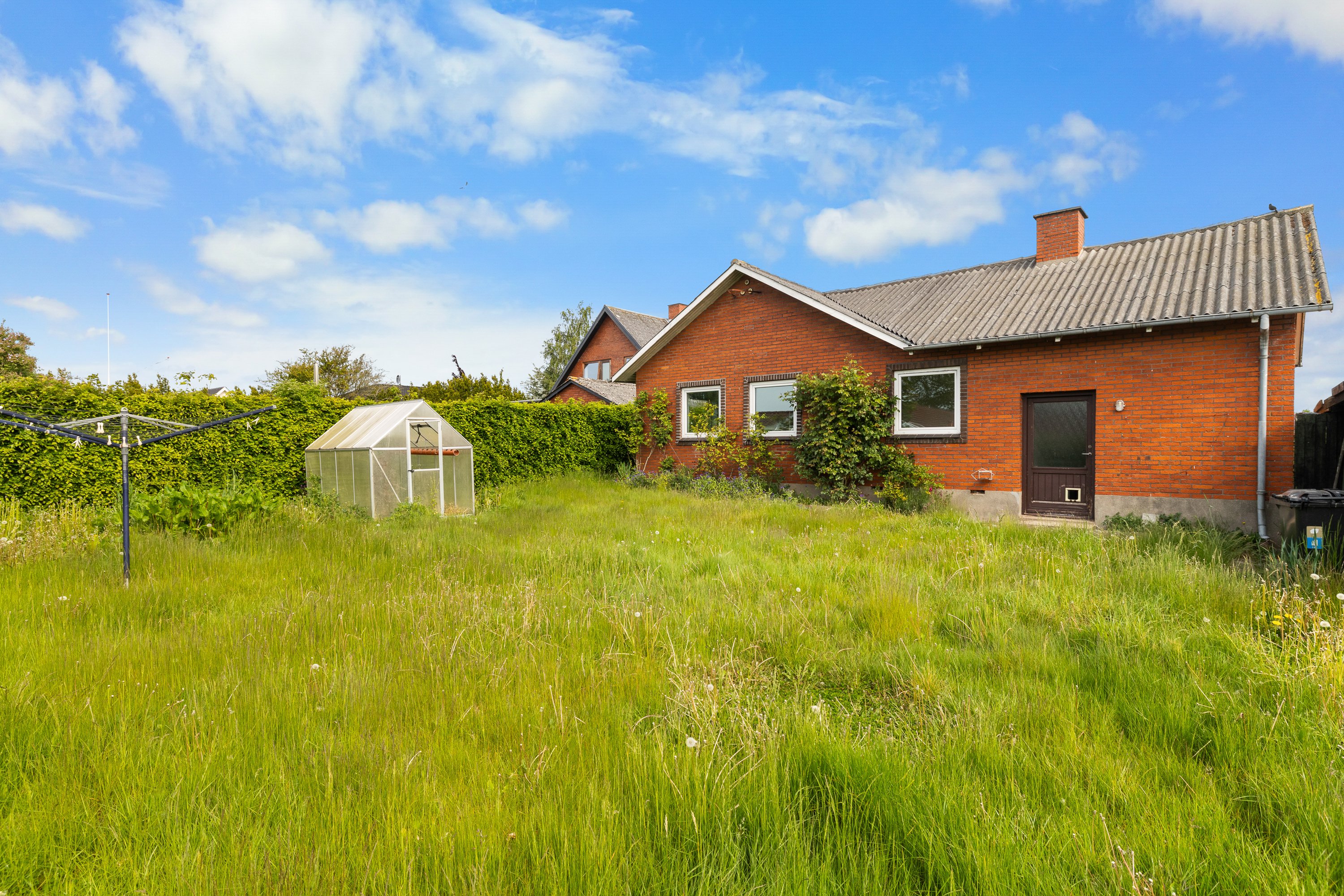 Haven er nem, udlagt til græs med carport, hyggeligt terrassemiljø med overdækning og mulighed for leg og boldspil. Desuden indkørsel med plads til parkering af flere biler. Søger du en nem, billig og velbeliggende bolig? Så er dette måske svaret.