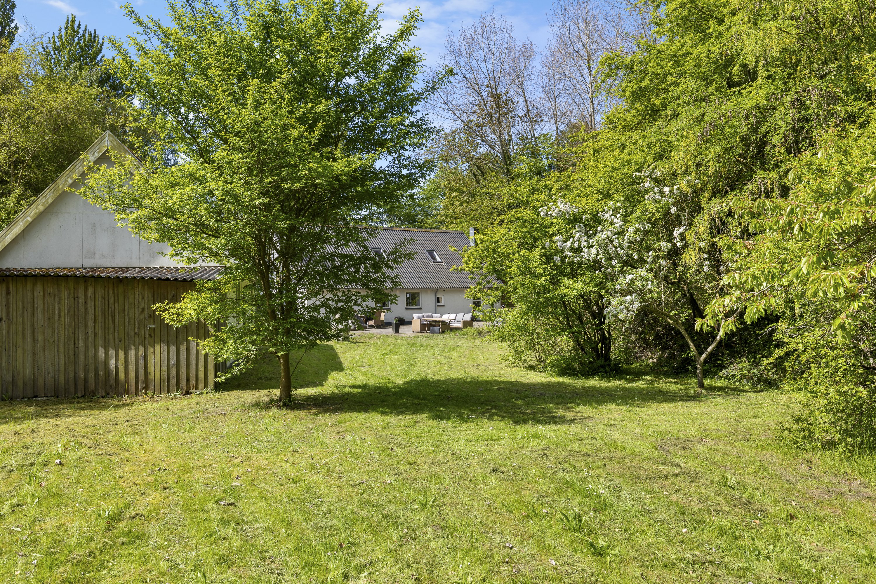 Man overser let den lille private grusvej, der fører ned til ejendommen, som en hemmelig sti fra Svendborgvej til den fredfyldte oase, der åbenbarer sig. Her for enden af grusvejen, er det højest en ræv eller et stykke dåvildt, der forvilder sig ned uden egentligt ærinde. Kom selv og oplev freden - her er fantastisk.