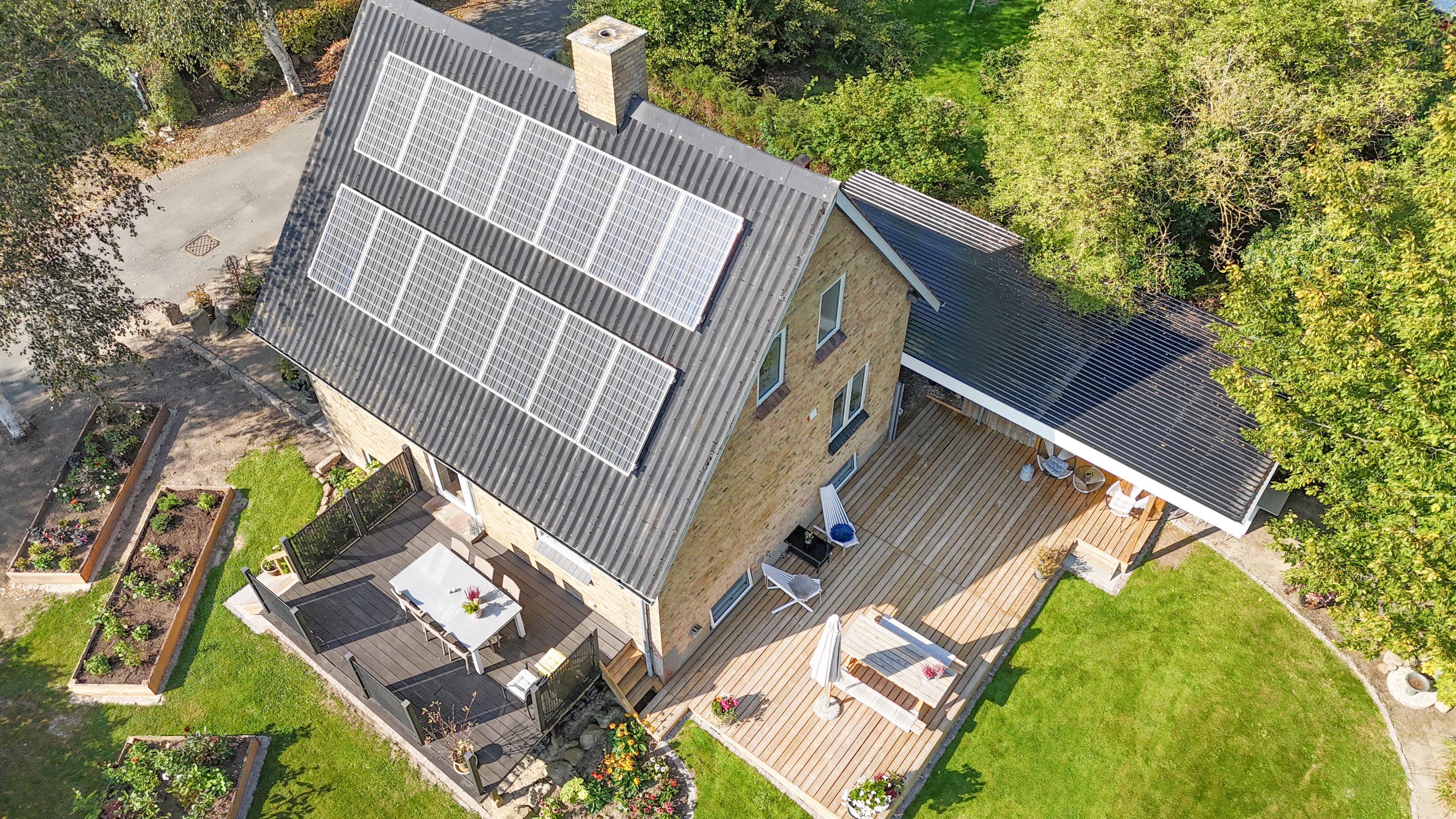 Det mest fantastiske udeområde med ny terrasse på 40 m2/veranda, en dejlig terrasse ud fra stuen og en nyanlagt plads foran huset til eftermiddagssolen udover den skønne have med små hyggelige hjørner og nyanlagte højbede.