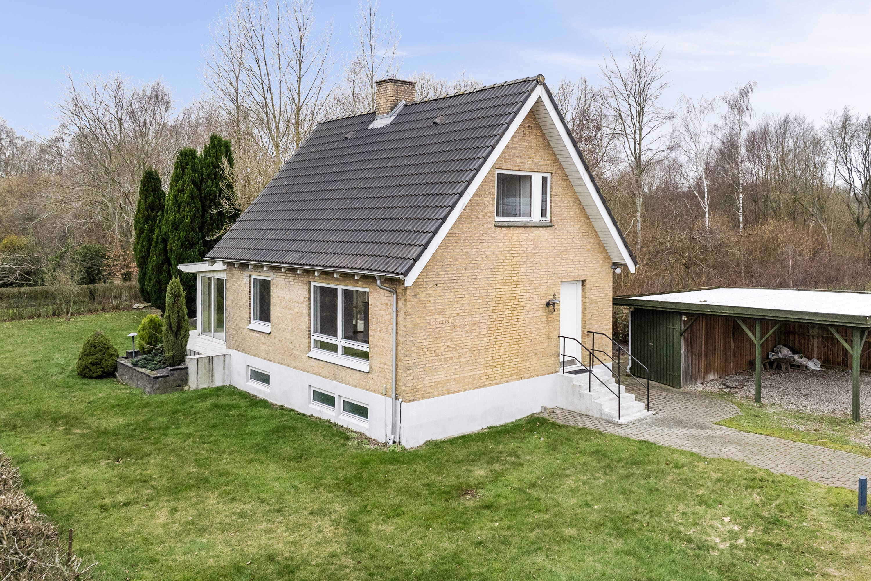 Der er mulighed for at parkere bilen i en carport, når I ankommer ved den gule murstensvilla, der er opført i 1955 og ligger roligt for enden af en lukket vej. I forsynes med en overdækket terrasse, ligesom en have og terrasse lægger sig op ad huset i vestlig og sydlig retning, så solchancerne er helt i top – det er med andre ord ikke usandsynligt, at I vil tilbringe mange timer i det dejlige udemiljø. Hvis I samtidig har brug for opbevaring af haveredskaber eller diverse fornødenheder, behøver I blot at benytte jer af ejendommens skur.