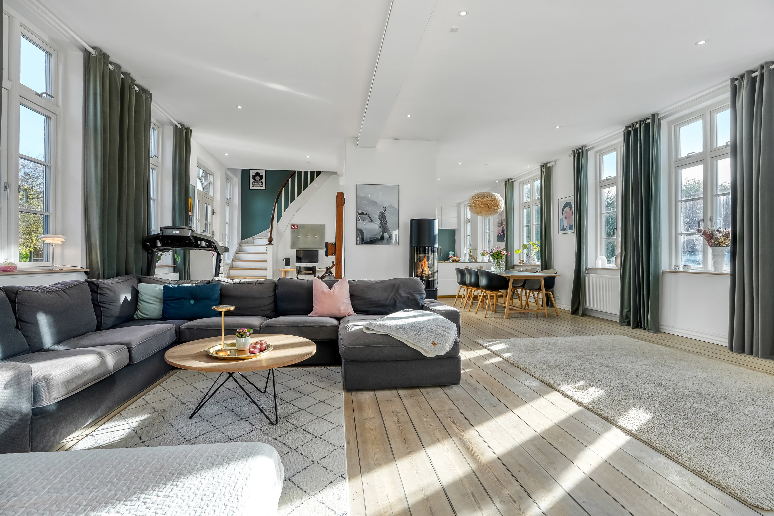 Ejendommen fra 1901 præsenterer sig som et lyst murstensbyggeri, som repræsenterer den klassiske stil fra starten af det 20. århundrede. Murede gesimser og smukke, høje sprossevinduer hører til de mange fine detaljer, og stemningen fører jer hele vejen indenfor. Her bydes I velkommen af en smuk hall, mens de lyse opholdsrum i stueplan udgør et naturligt samlingspunkt. Køkken-alrummet fra 2017 ligger i åben forbindelse til stuen, og det sammenhængende opholdsrum byder på Philips Hue-spots samt brændeovn fra 2021.