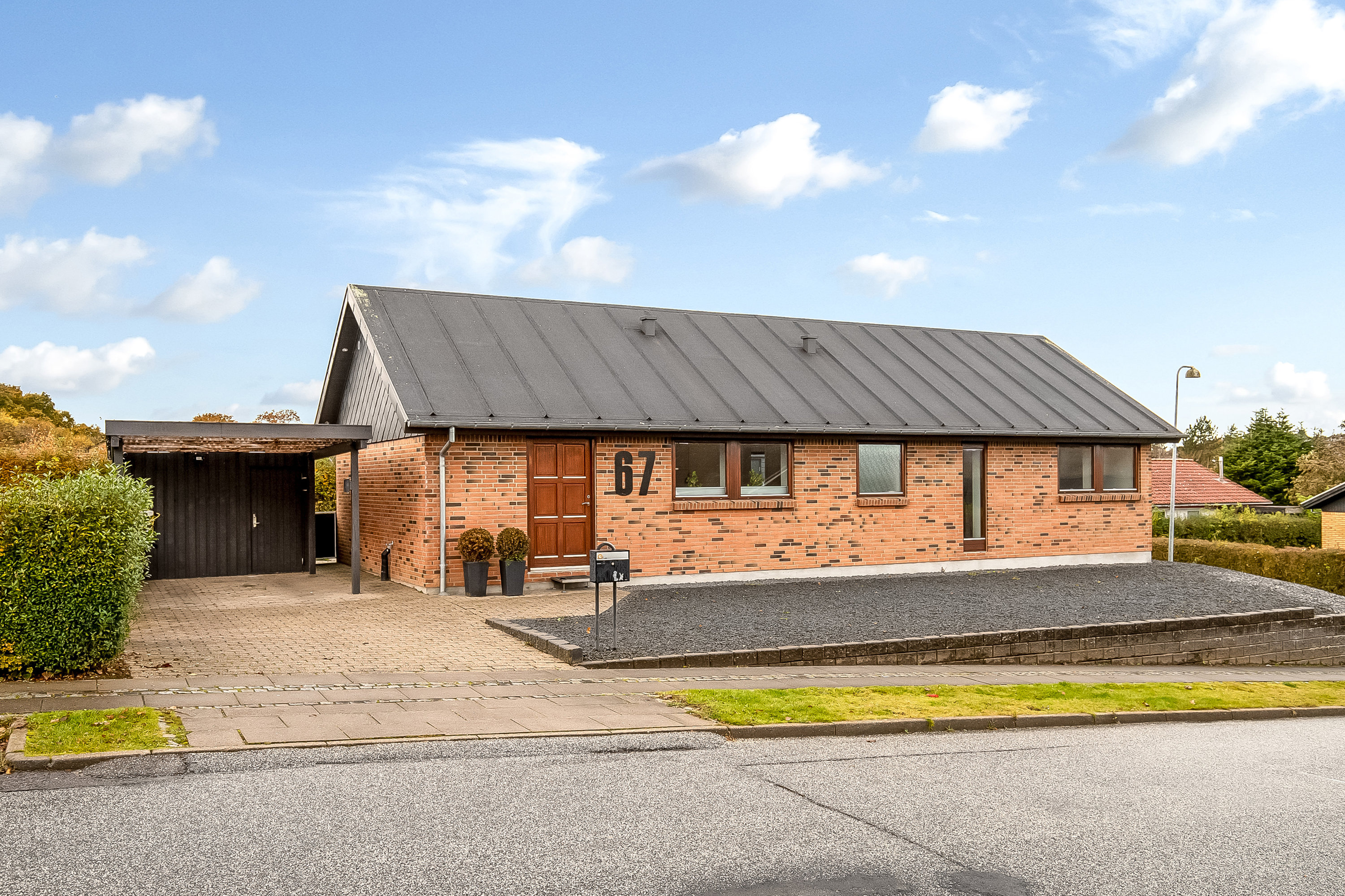 Her på den attraktive villavej kommer I til at bo i rolige, trygge omgivelser nær stisystemer og flot natur. Her er ligeledes er kort gåafstand til alle hverdagens fornødenheder som Bakkeskolen, daginstitution, idrætsfaciliteter samt indkøb og bager, - alt der får en travl hverdag til at gå op i en højere enhed. Når by og kulturlivet kalder, kan centrum nås på blot otte minutter på cykel eller I kan vælge at tage bybussen. For pendlere er det værd at bemærke der ligeledes er kort afstand til motorvejsafkørsel.