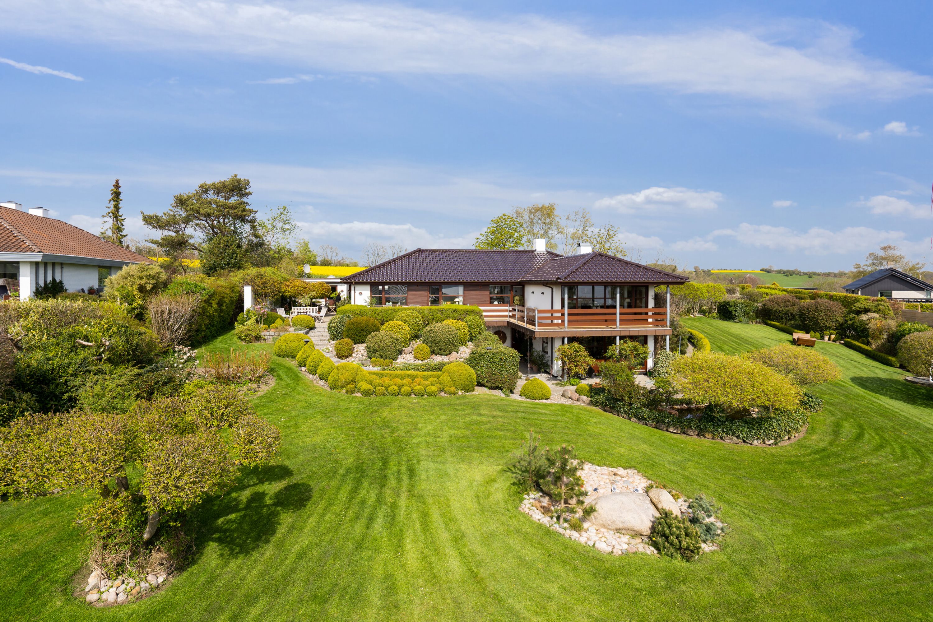 Udenfor venter der et dejligt syn i den velplejede have, som er nem at holde med flere terrasser.
