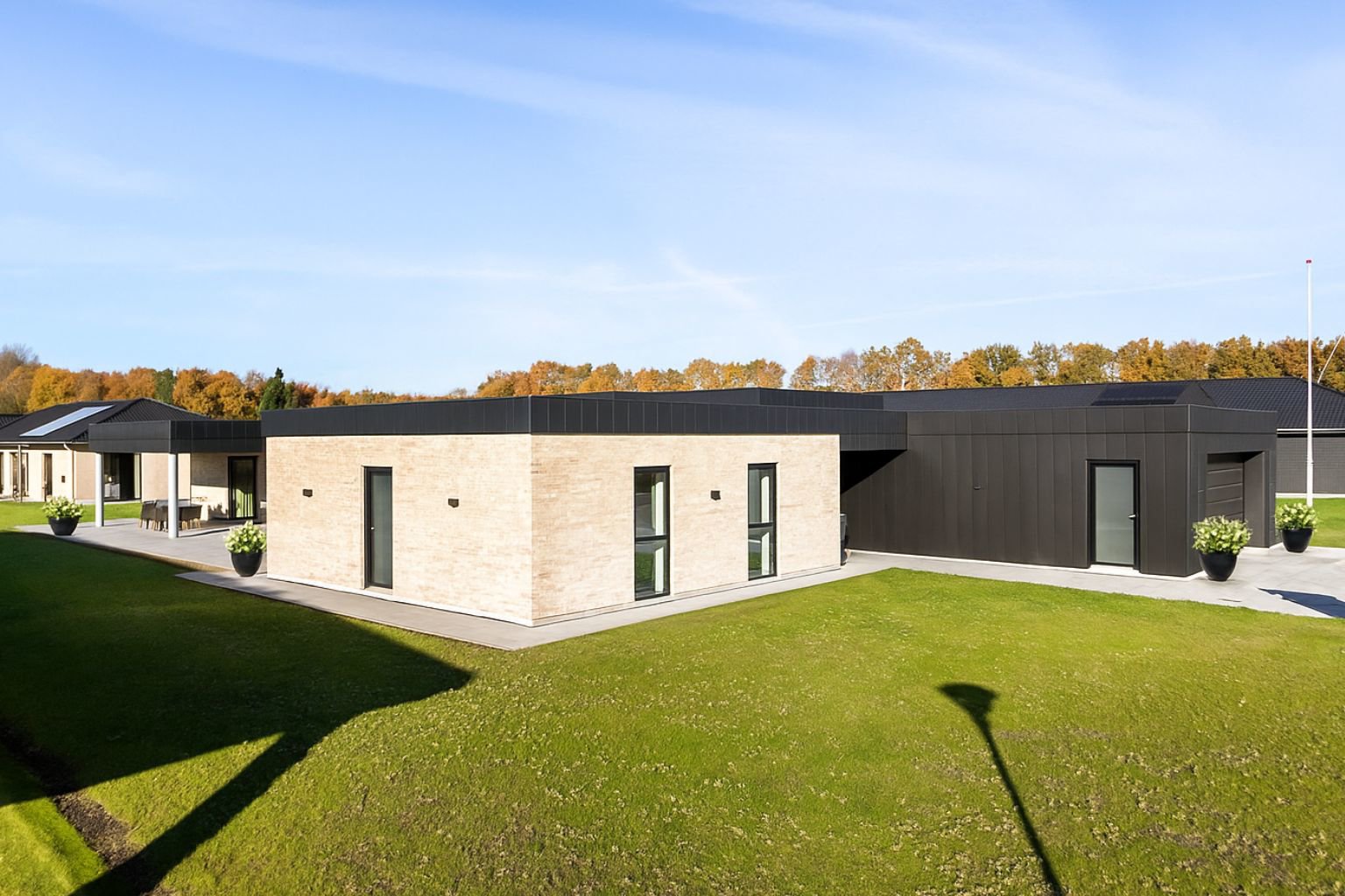Boligen er opført i 2025, og den byder velkommen til 225 kvadratmeter med lækre løsninger og et velstruktureret layout, hvor intet er overladt til tilfældighederne. Midt i boligen er det over 50 kvadratmeter store opholdsrum placeret med lysindfald fra begge de to langsider og desuden fra den tilstødende stue, hvorfra der kommer lysindfald fra et tredje verdenshjørne. Loftshøjden er på 3,13 meter, hvilket yderligere hjælper med til, at lysindfaldet får mulighed for at gøre sig maksimalt gældende.Lysindfaldet er nøje gennemtænkt, så det bidrager til en behagelig rumfølelse, når man bevæger sig fra rum til rum. De store termovinduer sikrer et godt lysindfald året rundt, uden boligen bliver for varm om sommeren, for de er forsynet med en diskret solfilm, så her ikke bliver for varmt, når solen står på om sommeren. Desuden er overdækningerne udformet så genialt, at lysindfaldet bliver bevaret, samtidig med at der skabes behagelige forhold med skygge og læ. Det er også værd at bemærke, at her er installeret et Unifi-system, sådan at I er sikre på at have en stabil og kraftig internetforbindelse i alle rum.