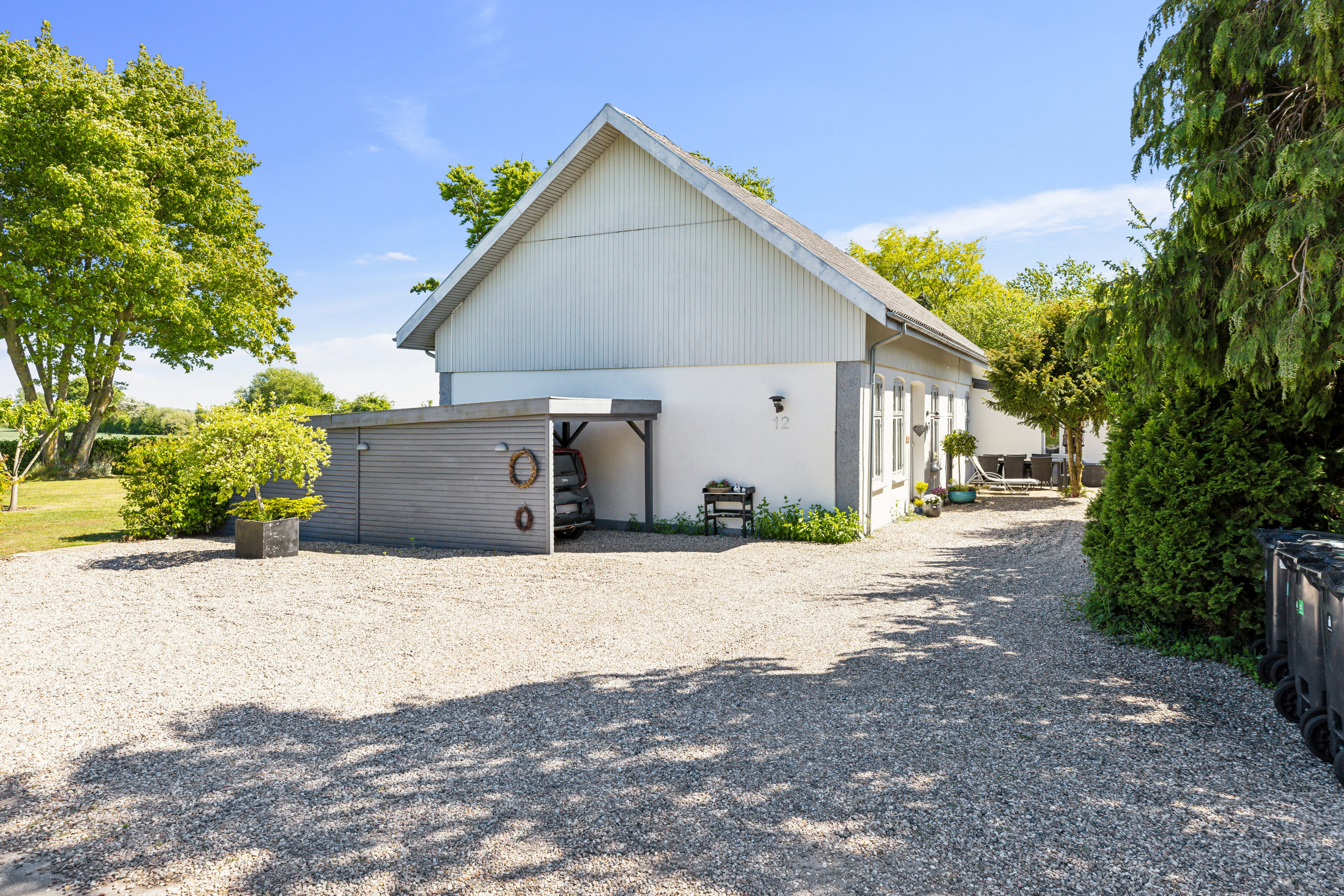I haven er der en stor, solrig terrasse, hvor morgenkaffen kan nydes i fred og ro, mens haven med sine velholdte grønne områder og store drivhus giver plads til leg og afslapning.