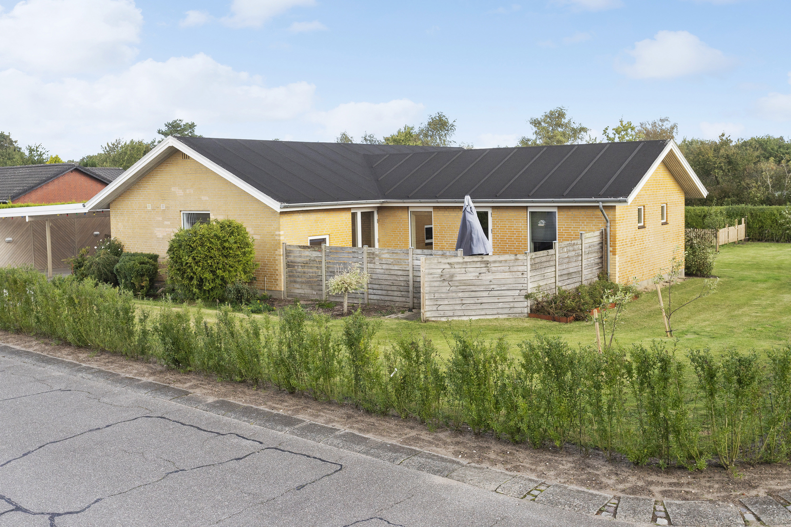 Udenfor venter en nem og overskuelig have, som giver plads til leg, afslapning og udeliv. Terrassen ligger godt placeret i forhold til solen, og det overdækkede areal giver mulighed for at nyde mange timer i det fri, uanset vejret. Overdækningen er opdelt, så du både får carport til bilen og en hyggelig gårdhaveafdeling, hvor der er læ og privatliv.