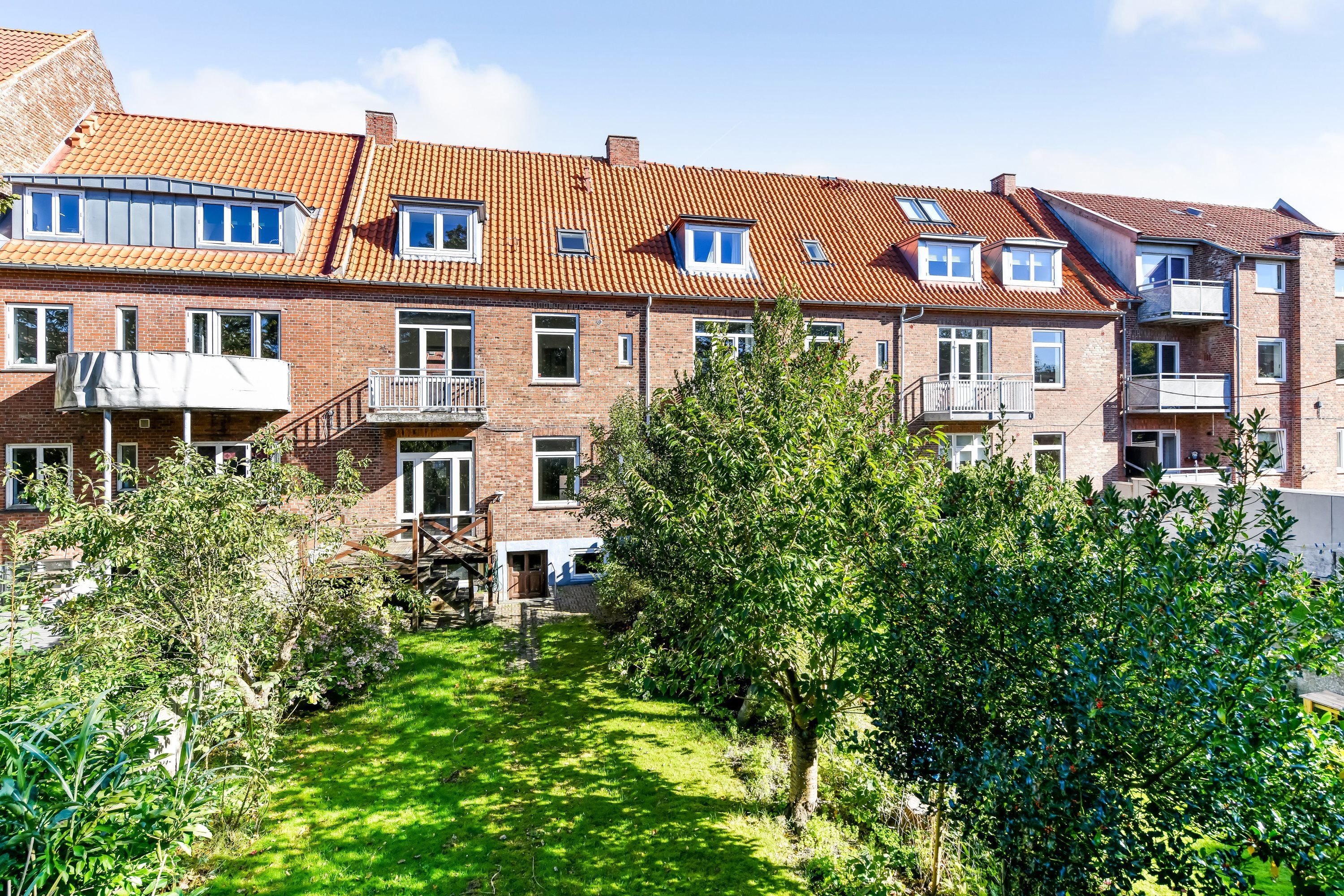 Til ejendommen hører også en dejlig lukket have, som fremstår som en grøn oase midt i byen, med træer, buske og græsplæne.
