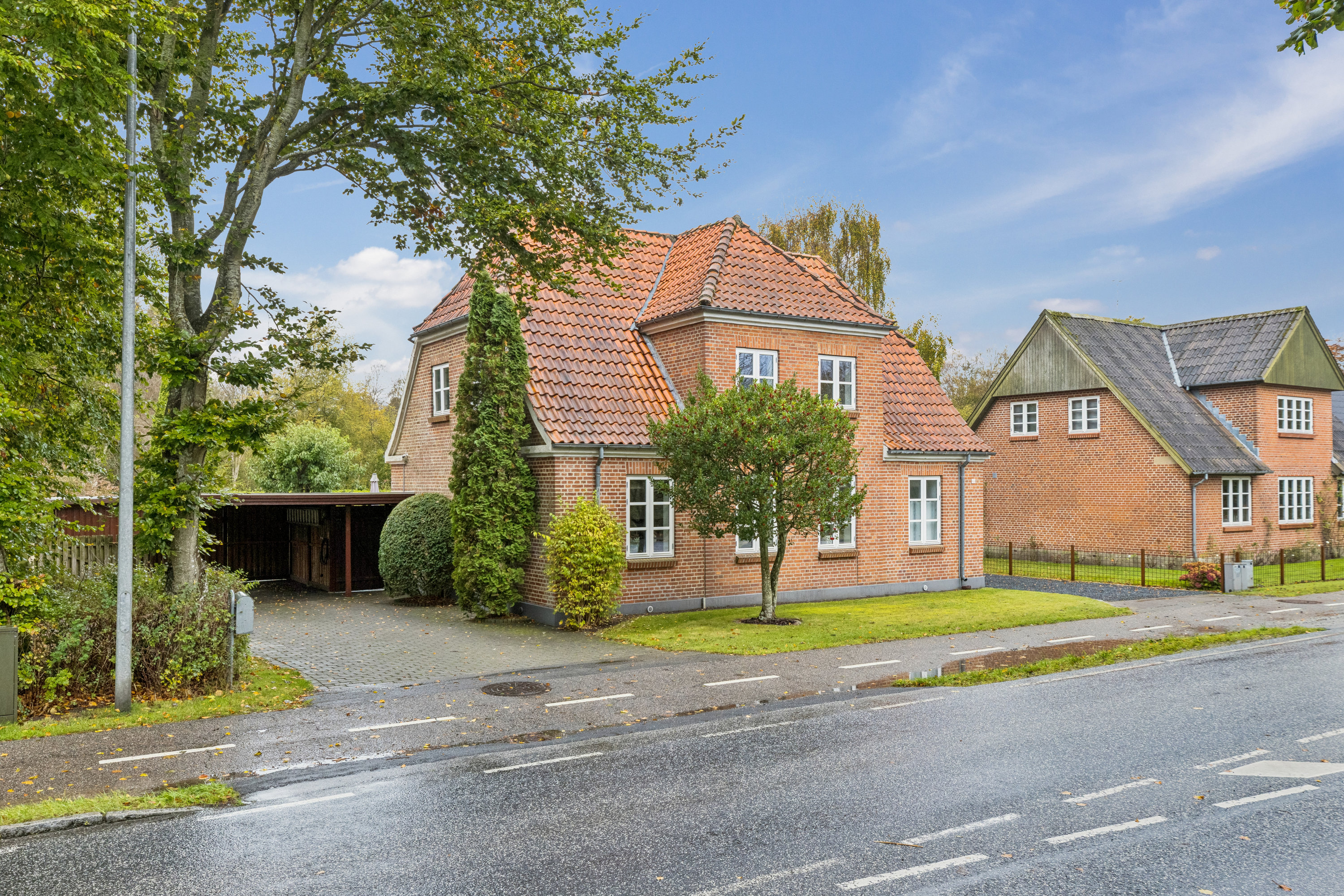 Udenfor venter en skøn og velanlagt have, der indbyder til afslapning og udendørsliv. Her finder du både en carport, en stor terrasse og et charmerende orangeri med både el og vand, hvor du kan nyde foråret og efteråret i ly for vinden. Derudover er der et frostfrit udhus, perfekt til værksted, opbevaring eller hobby. Ejendommen er desuden udstyret med et solfangeranlæg, som bidrager til en økonomisk og miljøvenlig drift – en detalje, der gør hjemmet både moderne og bæredygtigt.
