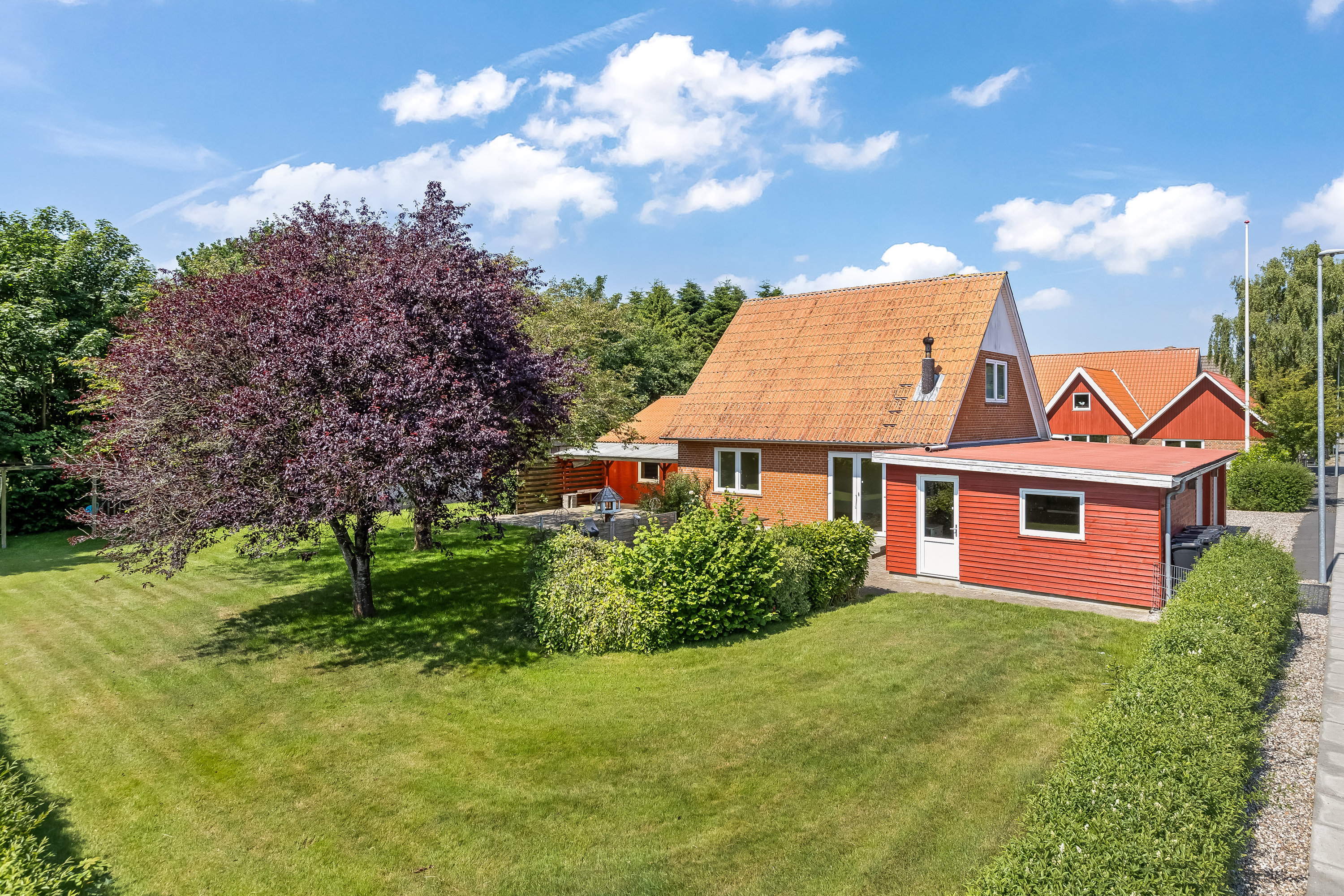 Udendørs får du en dobbelt garage med tilhørende værksted, perfekt til hobby, håndværk eller som ekstra plads til opbevaring. Haven er flot anlagt og giver masser af muligheder – uanset om du drømmer om blomsterbede, køkkenhave eller hyggelige kroge til afslapning.