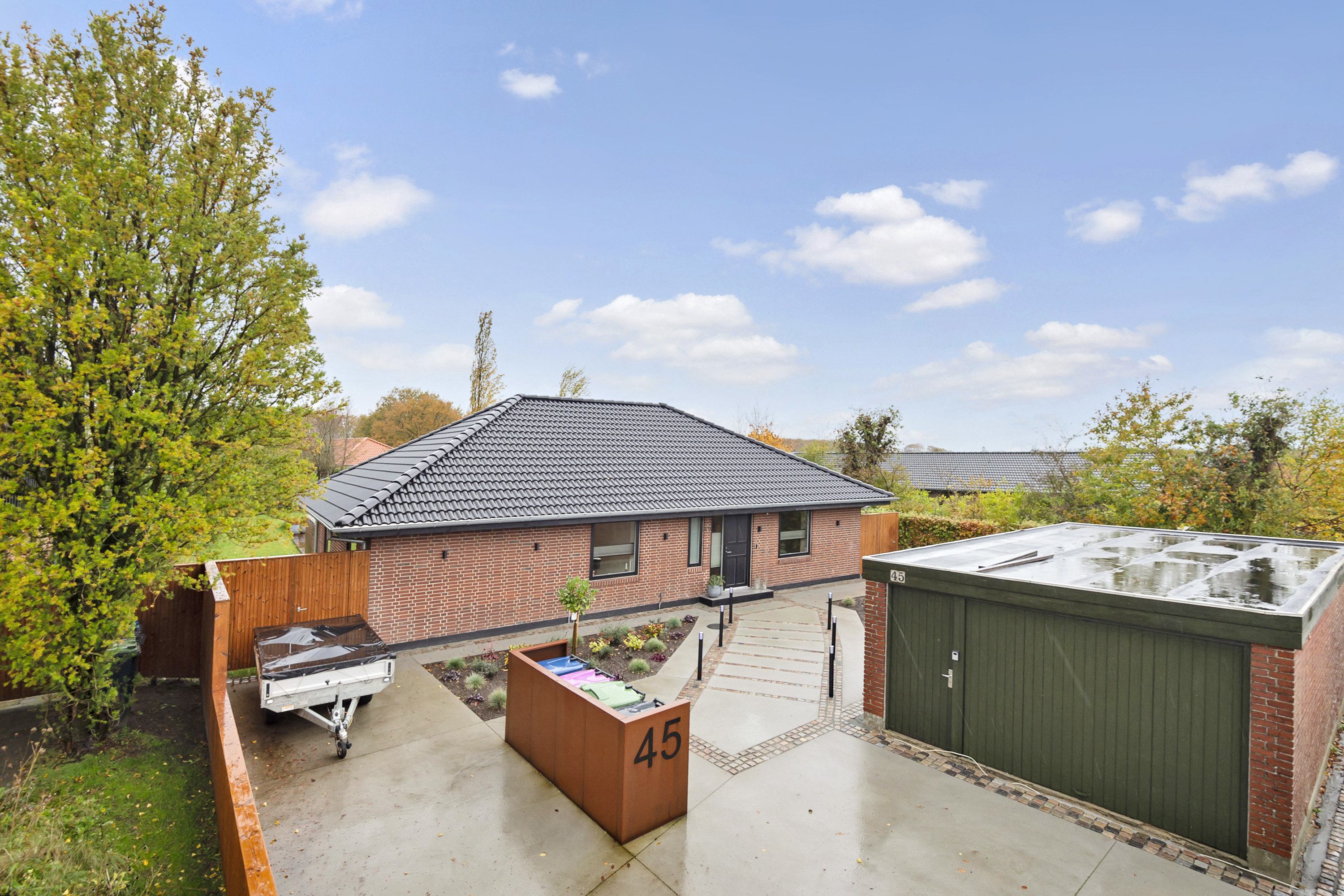 Vil du have det bedste af det bedste, ja så er dette hus bestemt et besøg værd. Huset er total gennemrenoveret indenfor de sidste par år, og fremstår som et nyt hus. Samtidig er beliggenheden for enden af lukket vænge også i top. Mange vinduer og skydepartier sammen med et par ovenlys vinduer giver et stærkt lysindfald. Direkte adgang fra alrum til terrasse og privat have omkranset af hække.