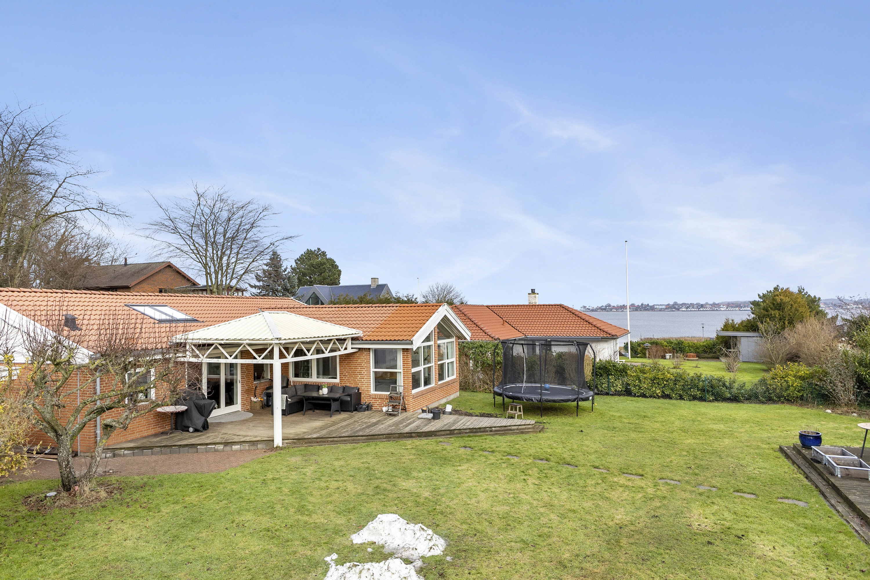Udendørs venter en dejlig have, der danner en grøn og privat ramme om huset. Her kan solen nydes dagen igennem på terrassen, mens udsigten over vandet skaber en helt særlig stemning. Den flotte udsigt til Strib Fyr og Lillebælt er et markant plus, som giver ejendommen noget ganske særligt.