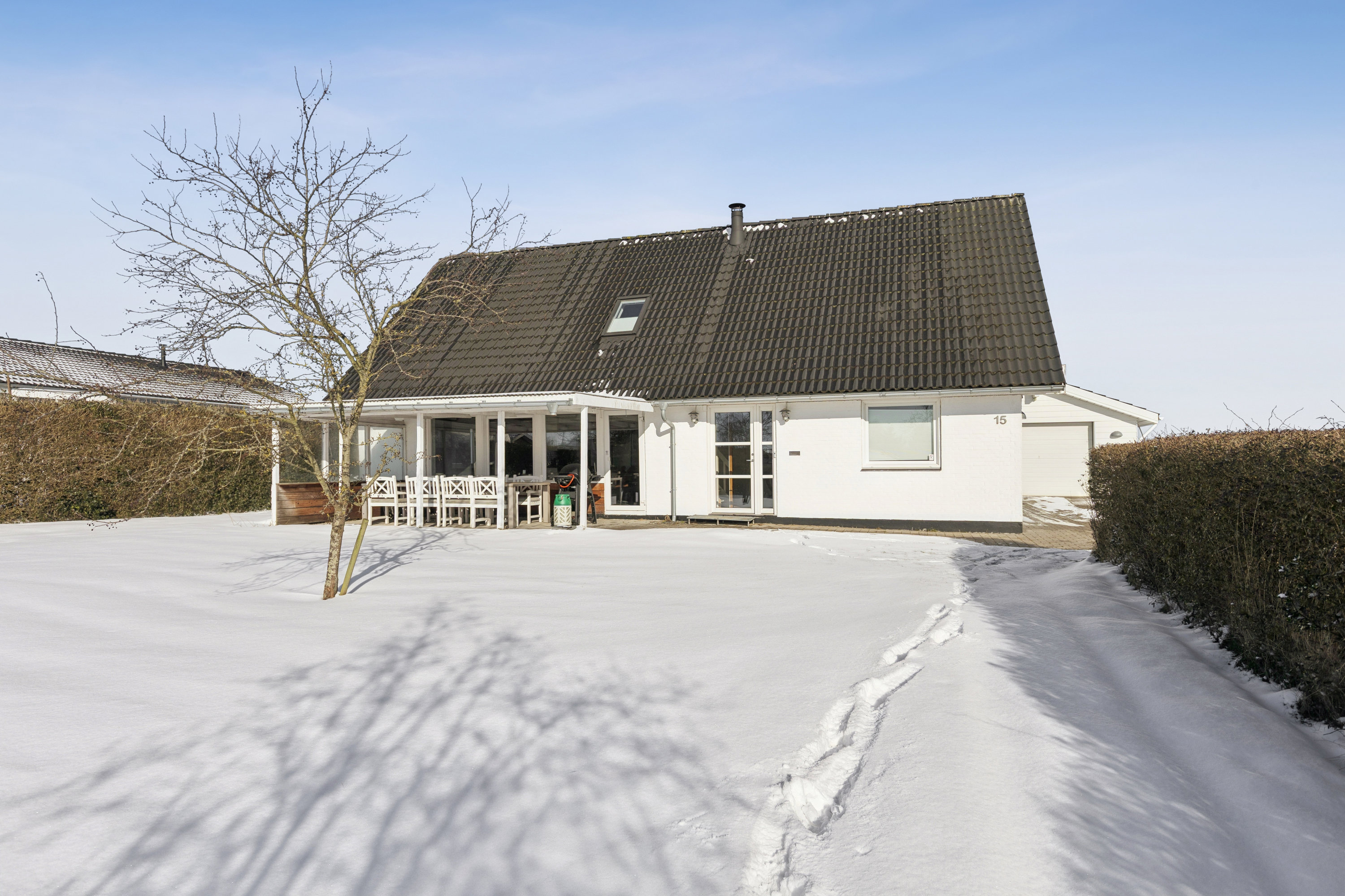 Velkommen til denne velindrettede og løbende moderniserede bolig fra 1967, der fremstår indflytningsklar og byder på hele 174 m² bolig fordelt på to plan. Her får du en rummelig og funktionel ejendom med god plads til familien, kombineret med en attraktiv og ugeneret beliggenhed samt en skøn udsigt til åbne marker. Boligen rummer i alt to stuer, tre gode værelser og to praktiske badeværelser, hvilket giver en fleksibel planløsning med mange anvendelsesmuligheder – ideel til både børnefamilien og dem, der ønsker god plads. Ejendommen er gennem årene løbende moderniseret, så boligen i dag fremstår i god stand og klar til nye ejere uden behov for større istandsættelser. Beliggenheden er i særklasse med udsigt til åbne markarealer, samtidig med at der er kort afstand til indkøb, daginstitutioner og hverdagens faciliteter. Derudover er ejendommen beliggende tæt på de naturskønne områder ved Høll, Hvidbjerg og Mørkholt, som er kendt for deres gode badestrande og hyggelige sommerstemning. Til ejendommen hører en stor garage opført i 2014, der tilbyder særdeles gode rammer for både parkering, opbevaring og indretning af værksted. Her er der rig mulighed for den pladskrævende hobby, gør-det-selv-projekter eller mindre reparationsarbejde. Den rummelige indkørsel giver desuden god plads til parkering af flere biler – ideelt når familie og gæster kommer på besøg. Indendørs bydes du velkommen i en stor og indbydende entré med god plads til overtøj og sko. Stueplan rummer to gode værelser, et praktisk badeværelse samt et køkken med god skabsplads i åben forbindelse med spiseplads og stue. Her skabes et lyst og indbydende opholdsrum, hvor familien naturligt samles. Fra køkken-alrummet er der direkte udgang til en overdækket terrasse, der forlænger sommeren og skaber en harmonisk overgang mellem inde- og udeliv. På førstesalen finder du en rummelig stue, som oplagt kan anvendes som tv-stue eller ekstra opholdsrum. Herfra er der udgang til en skøn altan med udsigt over de grønne marker. Etagen rummer desuden et værelse med eget stort badeværelse, hvilket gør etagen ideel som forældreafdeling. Lyder denne indflytningsklare bolig med værkstedsvenlig garage og attraktiv beliggenhed som noget for dig, så kontakt os allerede i dag for at bestille en fremvisning – vi glæder os til at byde dig velkommen