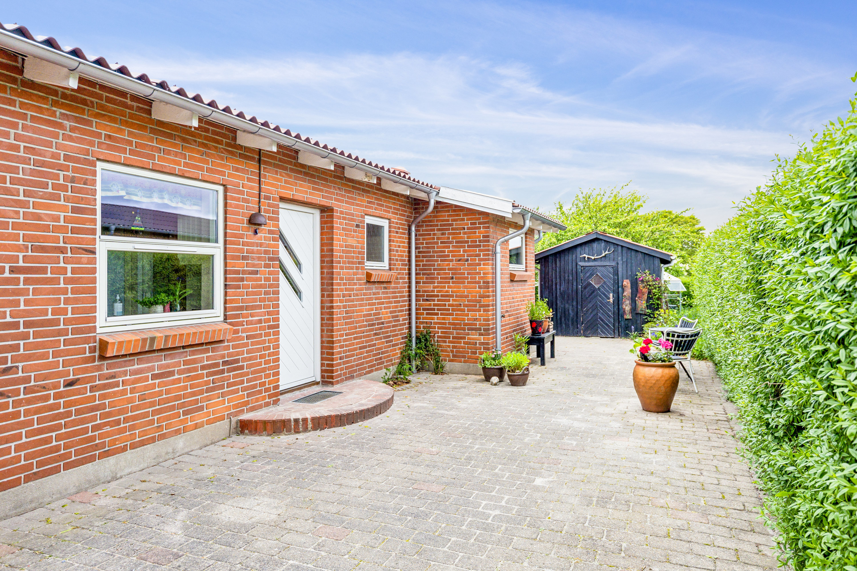 Fra stuen er der adgang til en skøn have, der indbyder til både afslapning og aktivitet. Her kan du nyde sommeraftener på terrassen, børnene kan lege frit, og de grønne omgivelser giver en dejlig følelse af privatliv og ro.